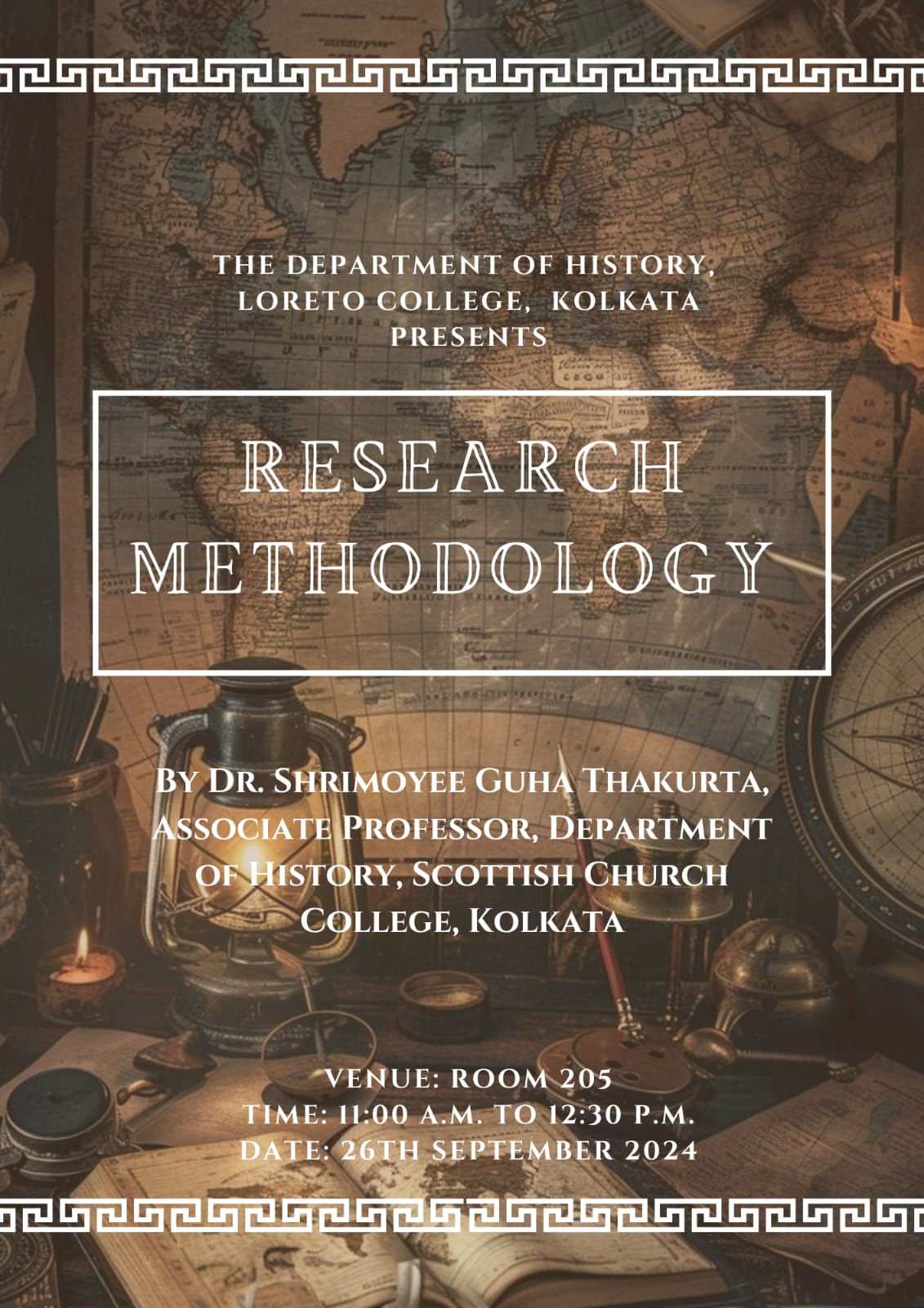 The Research Cell of Loreto College, Kolkata, in collaboration with the Department of History, conducted a session on Research Methodology in History on September 26, 2024. The resource person was Dr. Shrimoyee Guha Thakurta, Associate Professor, Department of History, Scottish Church College. The session was attended by all Semester V students of the Department of History.