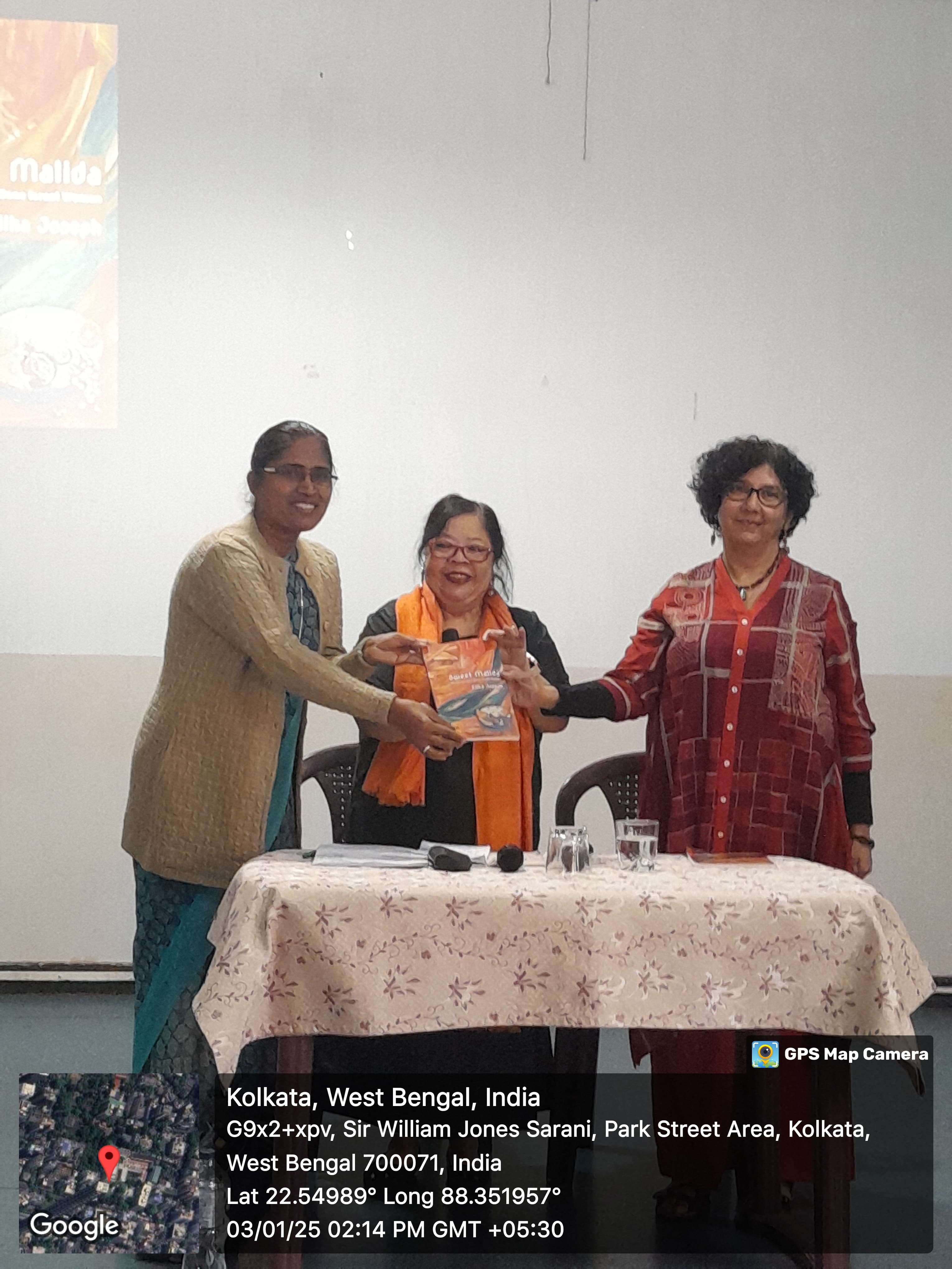After the inaugural speech, Sr. Dr. A. Nirmala, Teacher-in-Charge of Loreto College, along with Ms. Zilka Joseph and Dr. Julie Banerjee Mehta, released Ms. Joseph's book, Sweet Malida: Memories of a Bene Israel Woman.