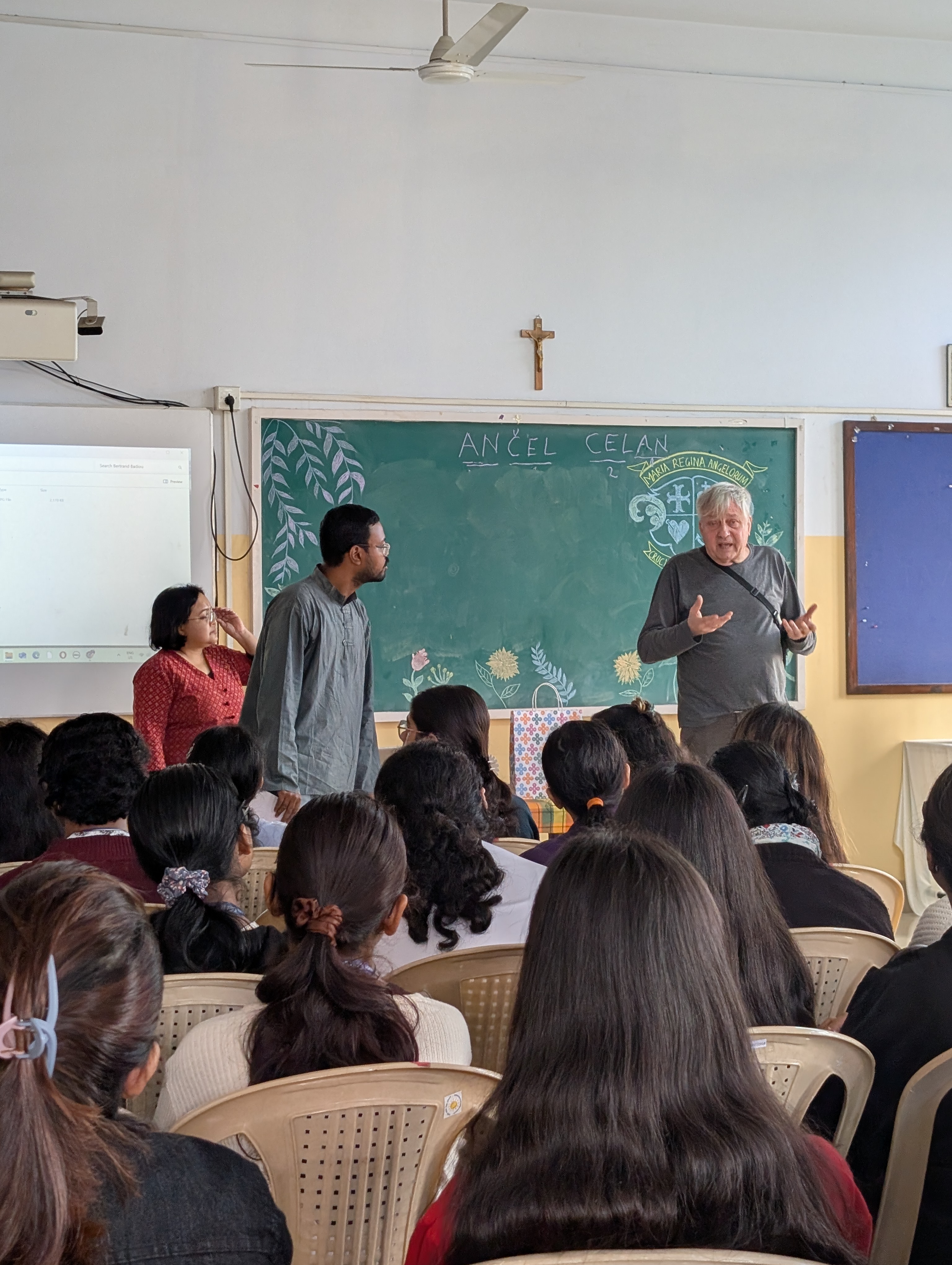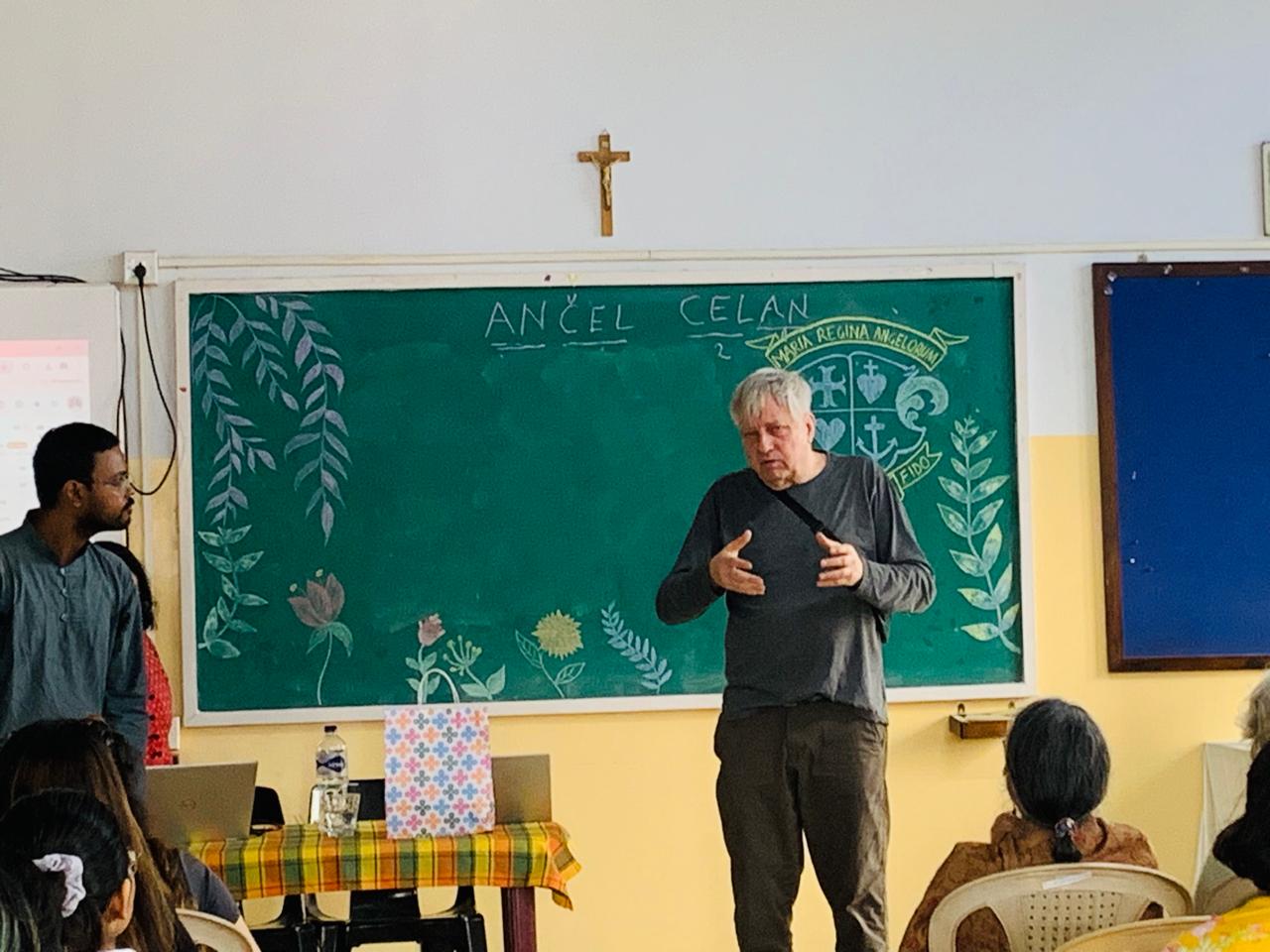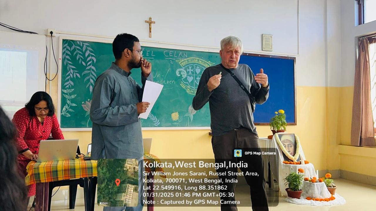 On January 31, 2025, the Department of English, Loreto College, Kolkata organised a special session on the renowned poet Paul Celan, one of the most significant voices in post-war literature. Attended by the UG and PG students and the faculty members of the Department of English, the lecture was by Mr. Bertrand Badiou, director of the Paul Celan Research Unit at the École Normale Supérieure, Paris, and the custodian of the poet's literary estate alongside Eric Celan. Although the lecture was delivered in French, Mr. Badiou's animated delivery and the swift translations by the interpreter kept the non-French speakers engrossed.