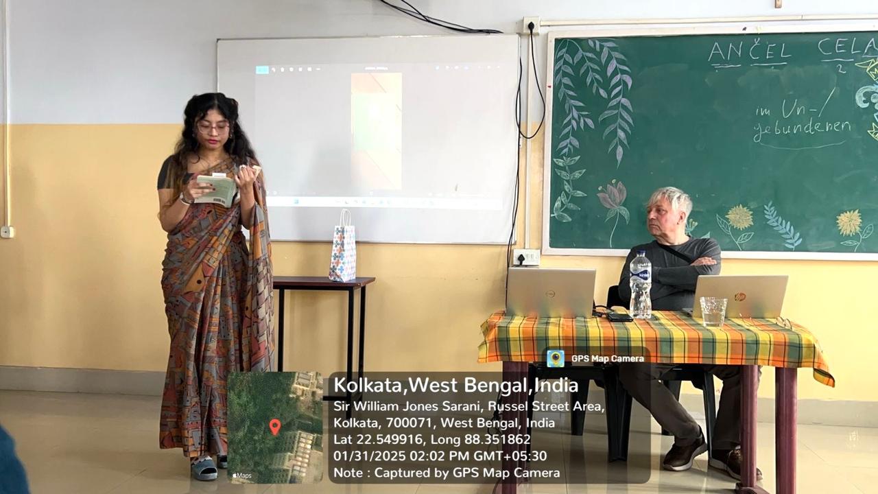 The talk was followed by a short interactive session, and the programme concluded with five UG and PG students reading out five of Celan's poems.