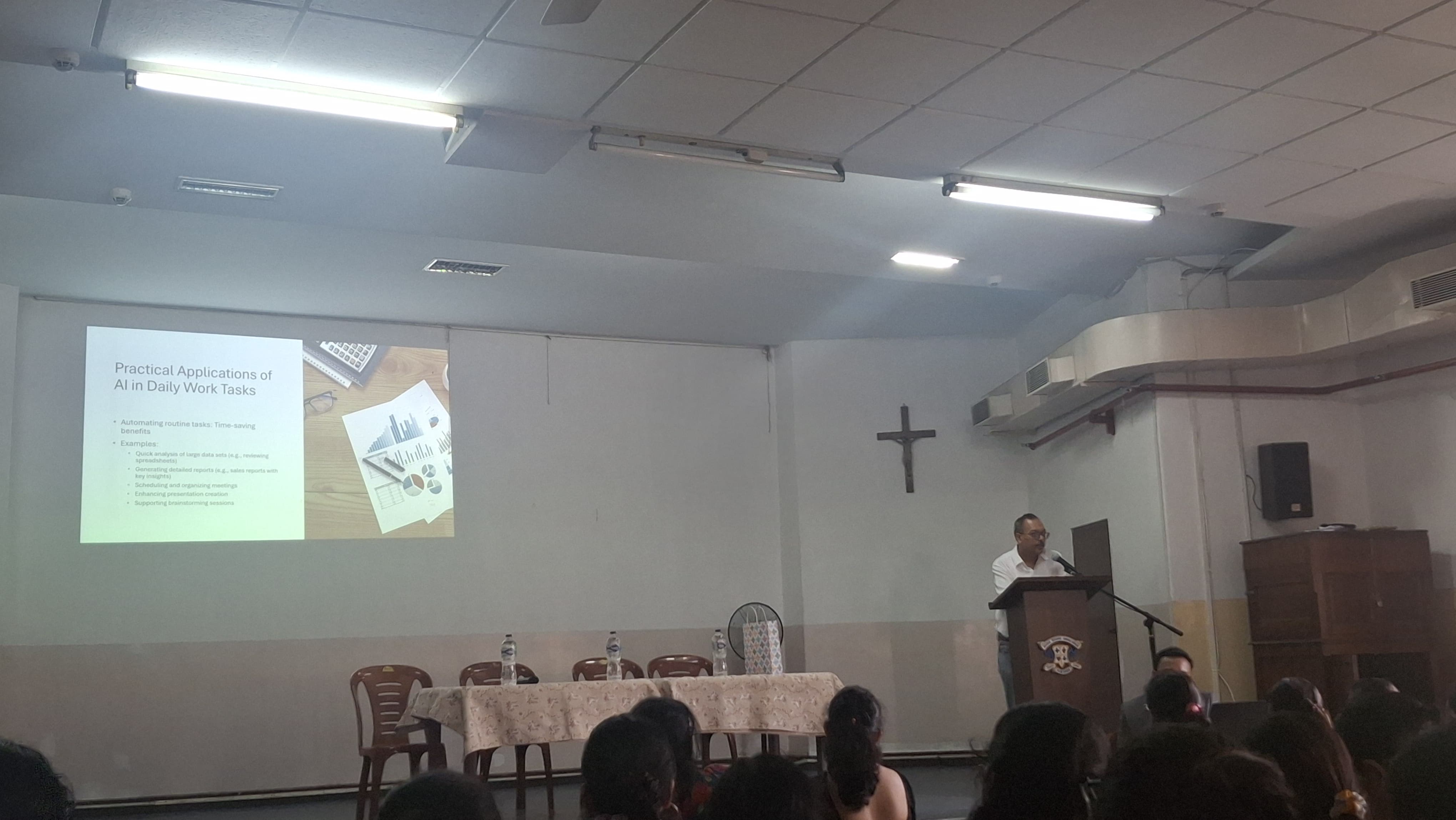 The session was divided into two key segments. First was a presentation on Generative AI and Data Science & Analytics. The resource person explained the role of AI in various real-world applications, such as Netflix recommendation algorithms, automated bank call systems, and fraud detection in financial transactions. The presentation delved into how AI-powered tools are transforming industries, emphasizing their role in predictive analytics, customer engagement, and automation. Students learned about machine learning models, neural networks, and their impact on decision-making processes.