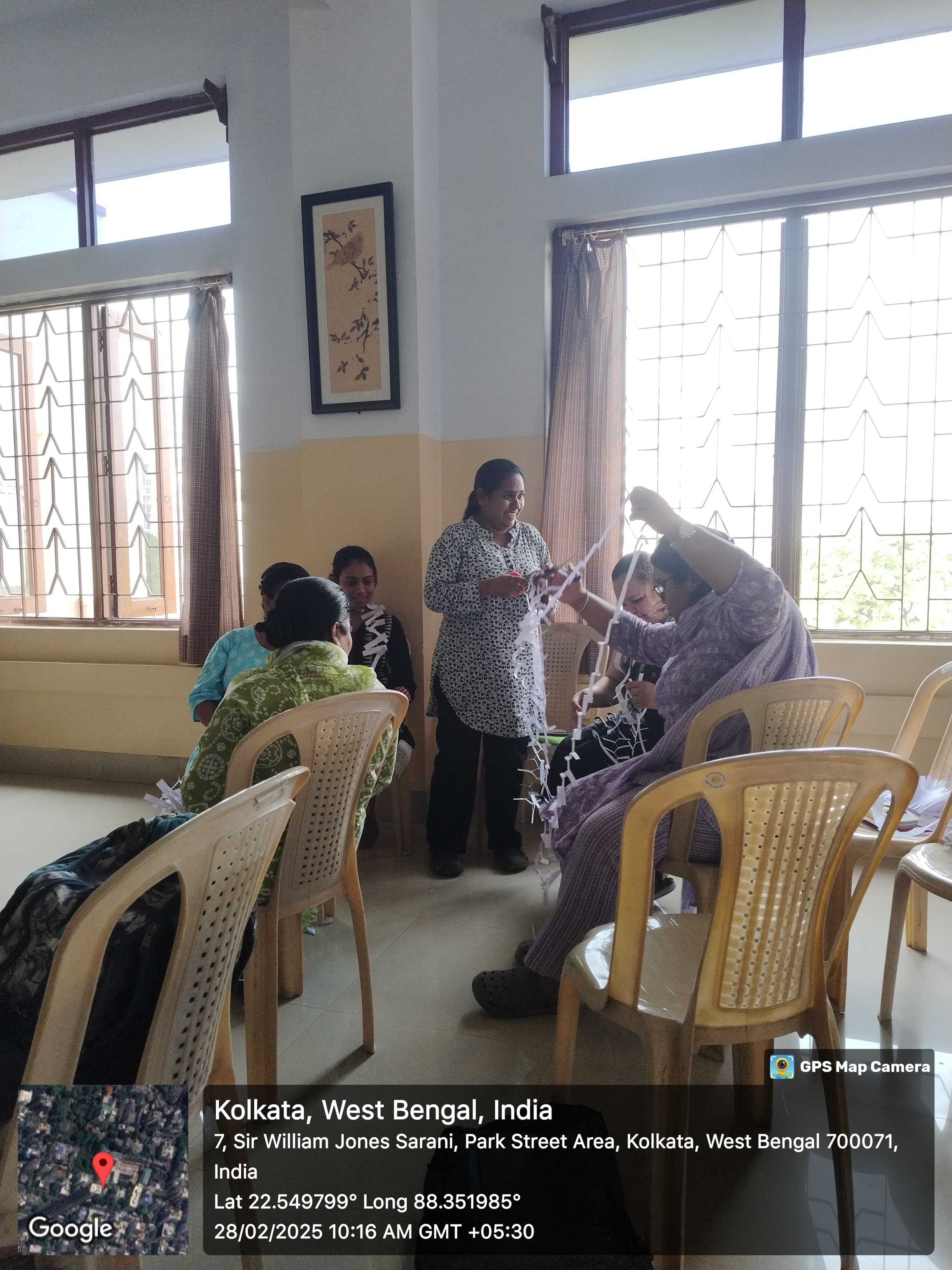 Then came the first activity-one that seemed almost impossible at first. Students, divided into four groups, were given a single sheet of paper and a pair of scissors and asked to make a garland that could pass through Ms. Lahiri from head to toe-without using glue or tearing the sheet apart. It felt like a trick challenge, but the classroom was filled with cheers and laughter as teams brainstormed, experimented, and figured out the hidden technique. When Ms. Lahiri proudly wore the paper garlands, it became clear: creative thinking can turn any challenge into a fun learning experience.