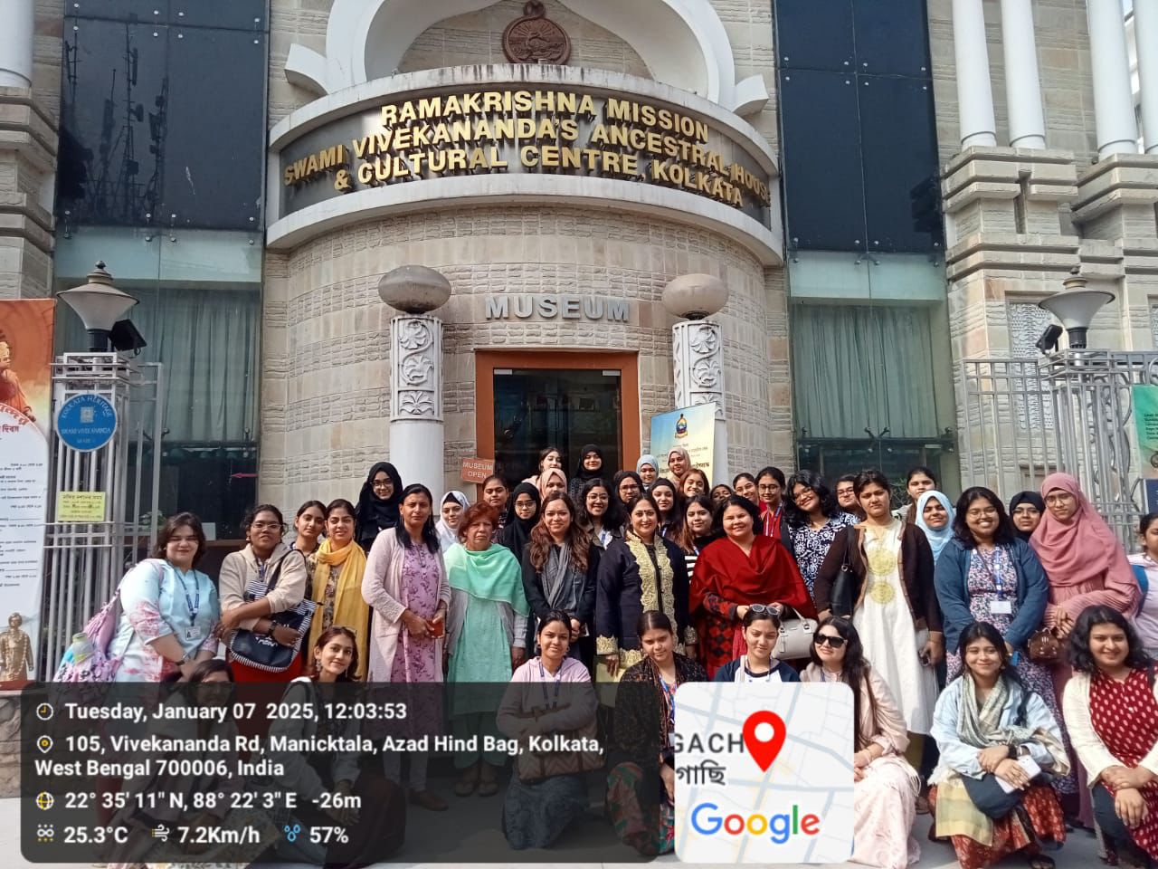 On January 7, 2025, Semester I and Semester III students of the Department of Education, Loreto College, Kolkata, along with all the faculty members of the department, embarked on an enriching educational tour to the Ramkrishna Mission Swami Vivekananda Ancestral Home and Cultural Centre. This cultural and educational trip was an attempt to immerse the students in the life, teachings, and legacy of one of India's greatest spiritual leaders and educators-Swami Vivekananda.