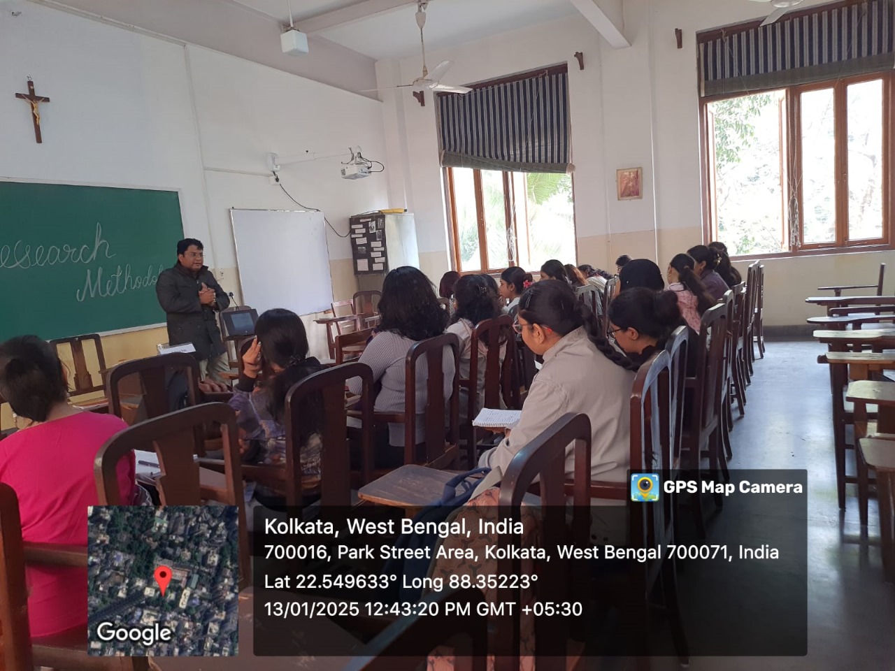 On January 13, 2025, the Semester III students of the Department of Education attended an insightful workshop on Research Methodology at Loreto College, Kolkata. The session was led by Professor Aditya Das, Assistant Professor and Head of the Department of Commerce at Raghunathpur College and visiting faculty at the University of Calcutta in the Department of South and Southeast Asian Studies.