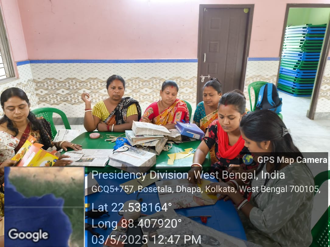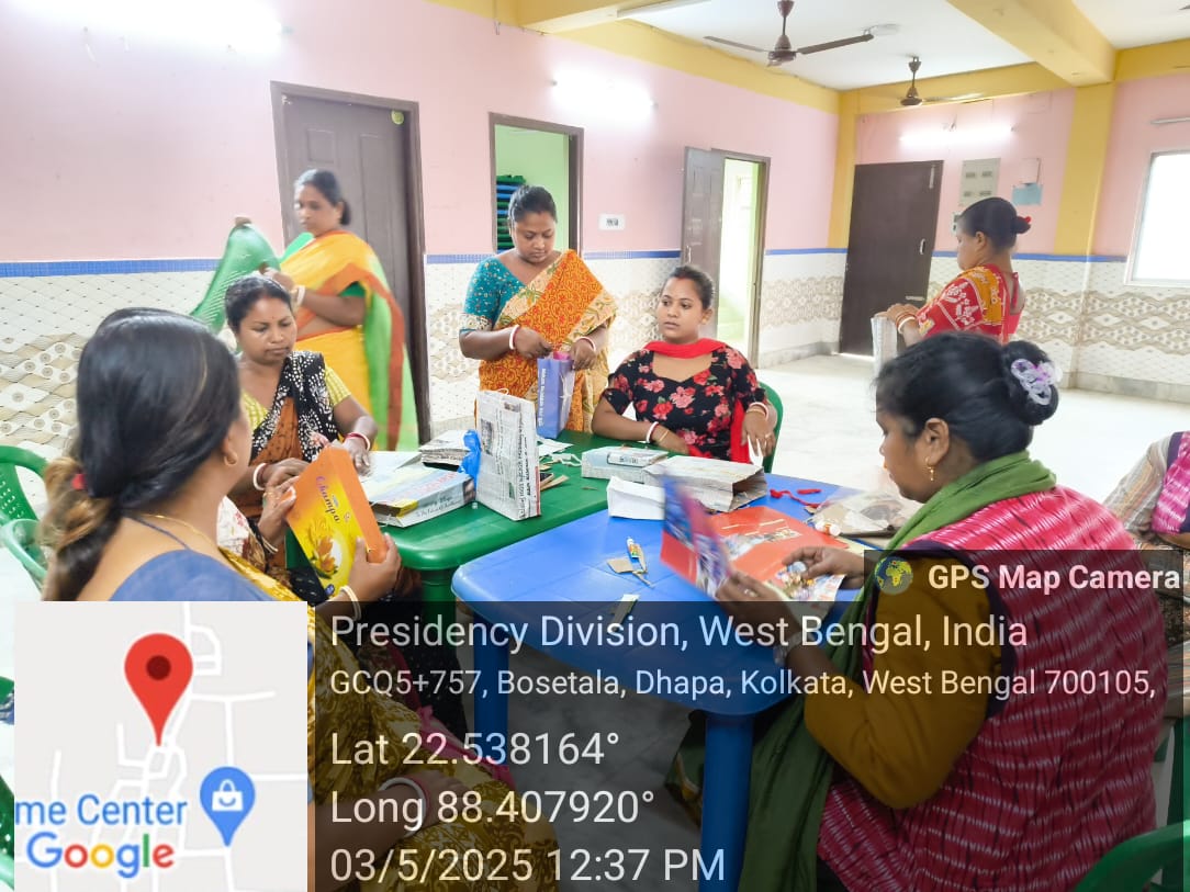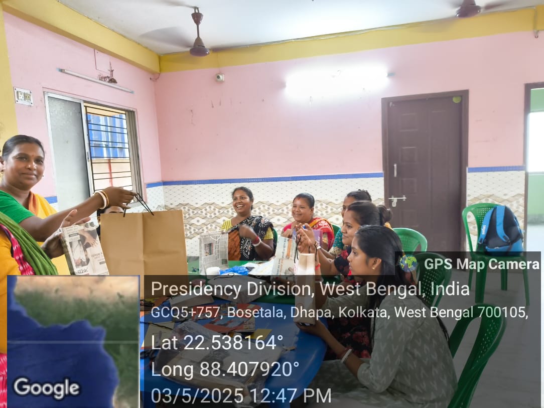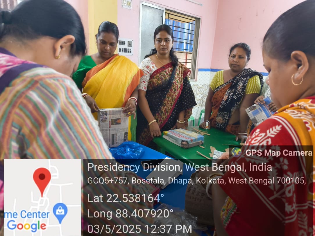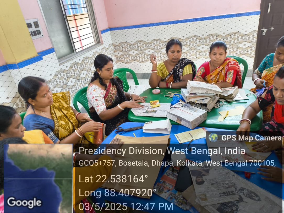 Ankur Kala with their master trainer provided training to the village women on making paper bags of all sizes, using daily newspapers which are easily available to them. The women of the village learnt it very quickly and were able to engage in live demonstrations.