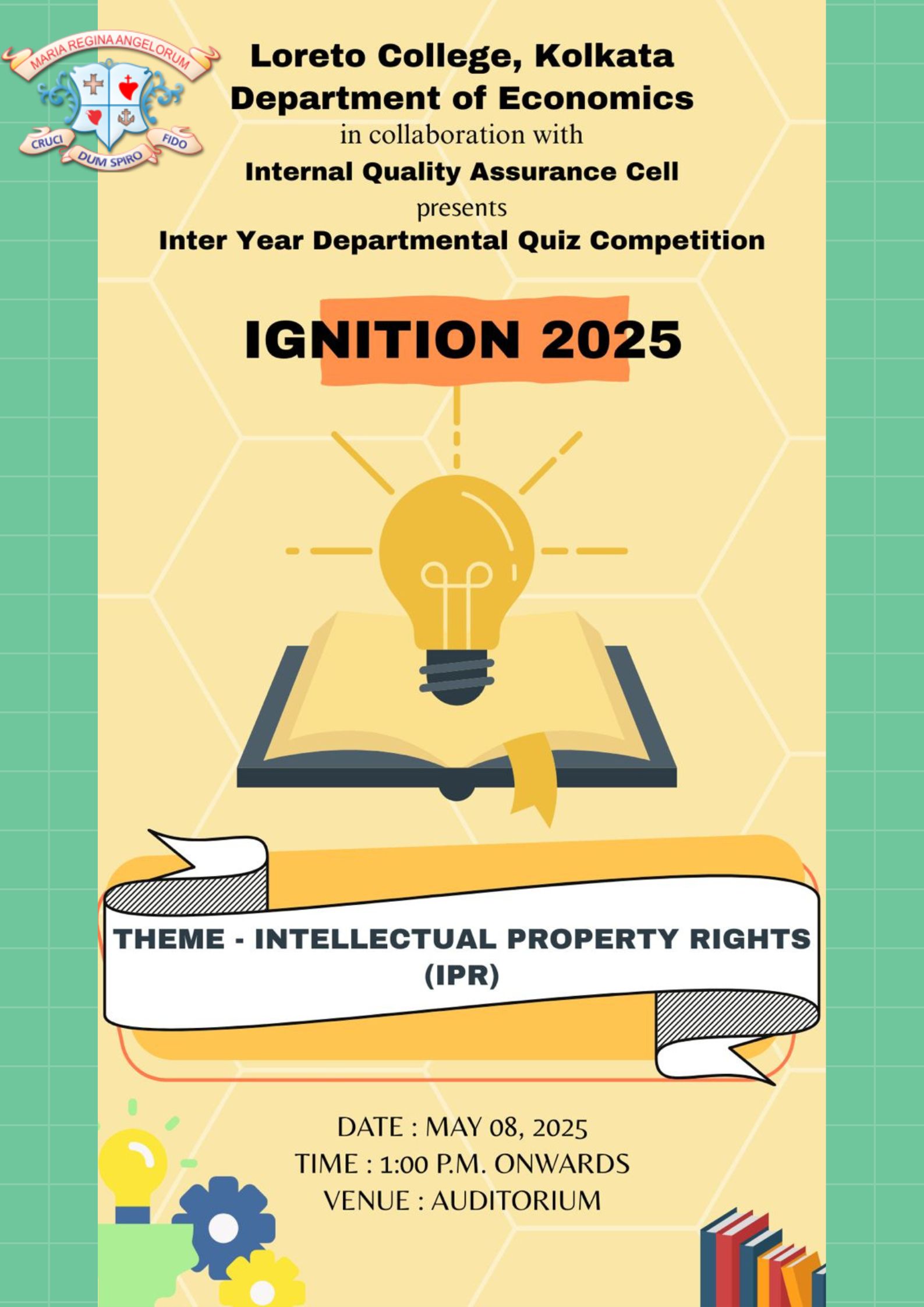 The Economics Department of Loreto College, Kolkata, organized its annual quiz competition IGNITION on May 08, 2025, at the College Concert Hall. This year's theme, "Intellectual Property Rights," offered participants a thought-provoking exploration into the domain of global and national IPR frameworks.
