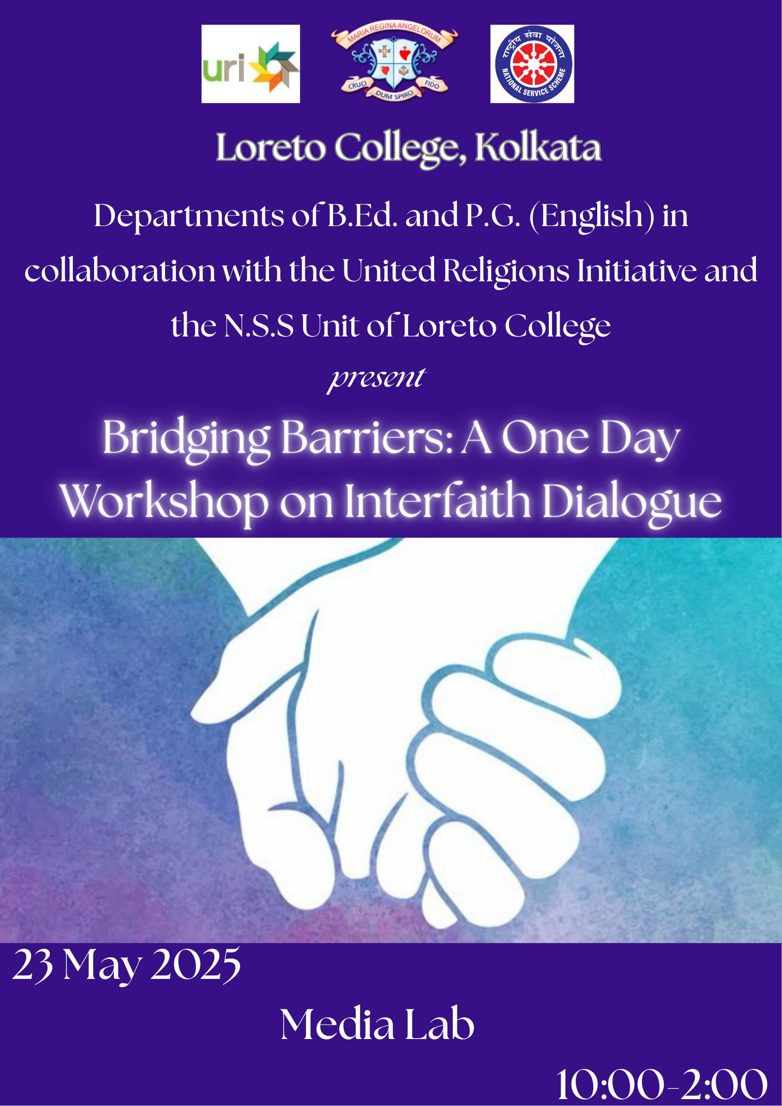 In an increasingly polarized world, the importance of interfaith understanding and cross-cultural communication cannot be overstated. With this in mind, a one-day workshop titled Bridging Barriers: A One Day Workshop on Interfaith Dialogue was organized to foster empathy, inclusivity, and peaceful coexistence among future educators and professionals. The final year students of the B.Ed. Department and Post-Graduate (English) Department, participated in the workshop which was held in association with the N.S.S Unit of Loreto College on 23 May, 2025.