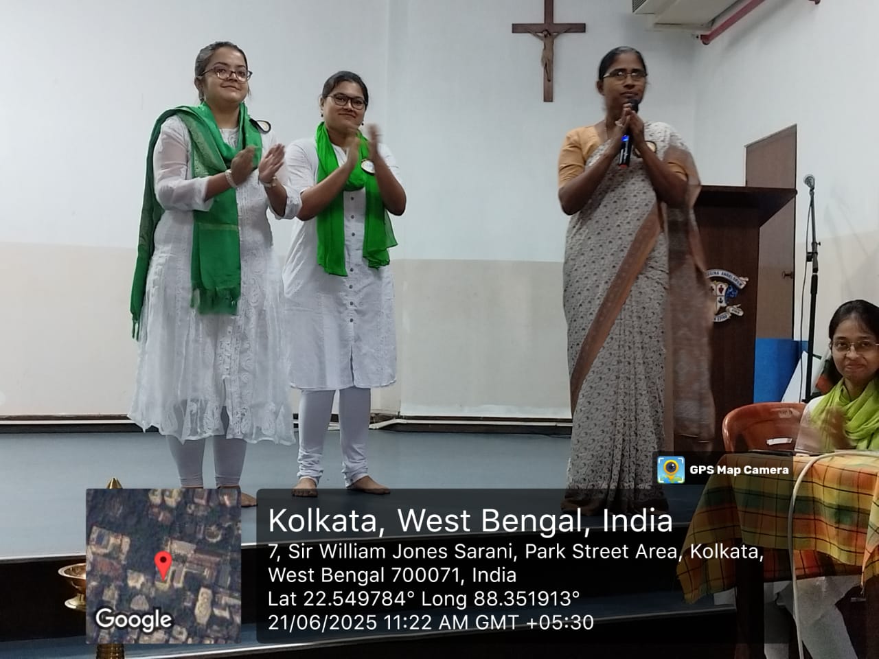 A ceremonial lighting of the lamp was performed with reverence by our esteemed Teacher-in-Charge, Dr. Sister A. Nirmala, alongside the Head of the B.Ed Department, Dr. Kaustuva Banerjee, symbolizing the dispelling of ignorance and the ushering in of knowledge and wellness.