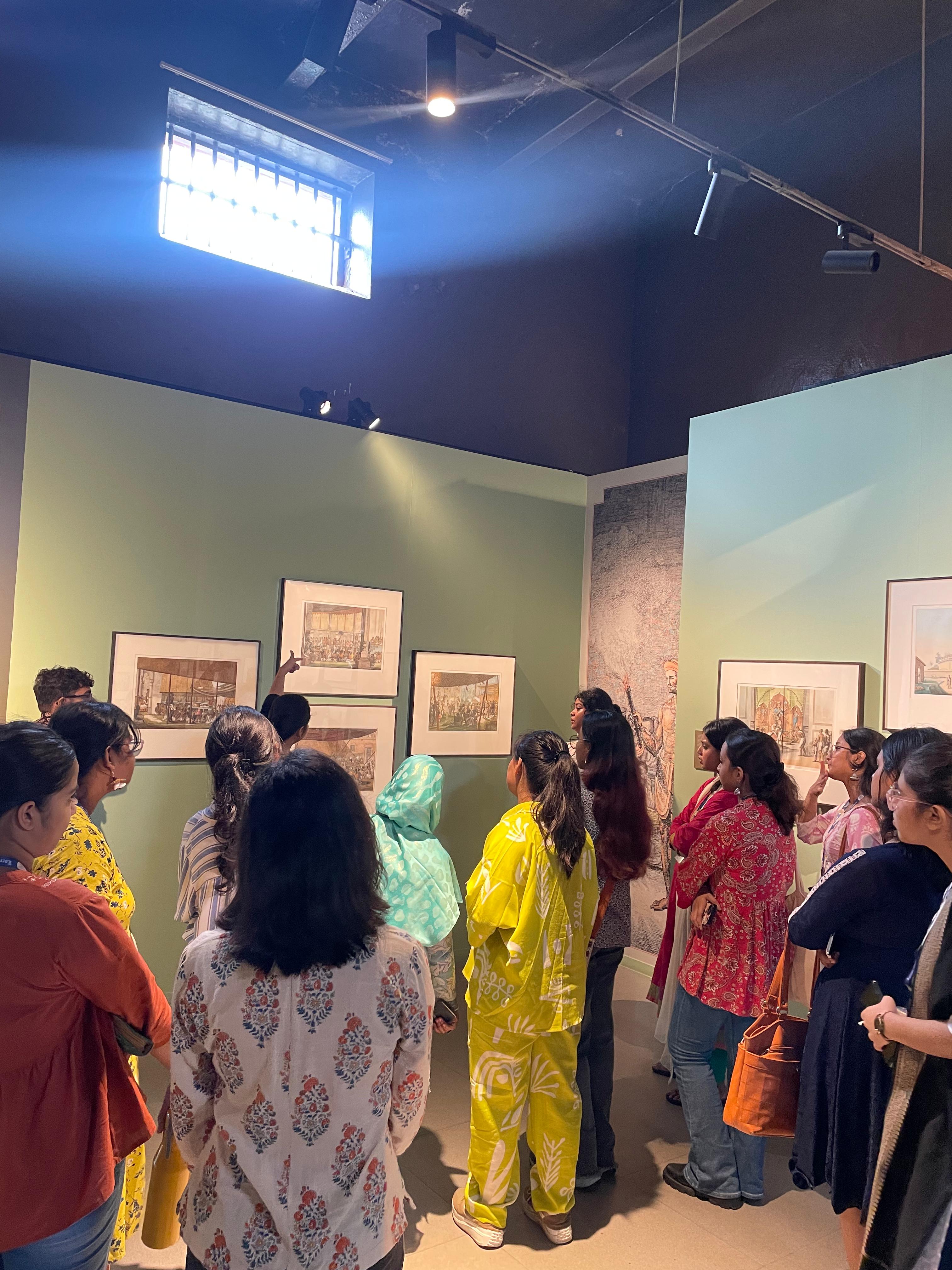 The exhibition also facilitated an interactive session with Ms. Ayana Bhattacharya, a representative from DAG (Delhi Art Gallery), who guided students through the conceptual depth and visual distinctions in the Paris editions of Solvyns' work. Discussions unfolded around Solvyns' unique transliteration of Bengali terms into French, sparking interpretive curiosity. Furthermore, the challenging dimensions of his work prompted students to question entrenched ideas of caste hierarchy, gender justice, and cultural representation. By portraying professions from every level of society and detailing Indian material culture with ethnographic precision, Solvyns' work became a mirror to the complex layers of 18th-century India. The visit provided students with a profound learning experience, encouraging them to critically examine colonial perspectives, appreciate art as a form of historical inquiry, and reflect on how representation shapes understanding of the past.