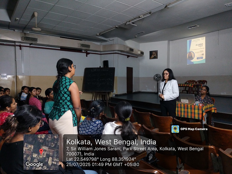 On 25th July, 2025, the Department of Economics, Loreto College, Kolkata department organised alumna interaction event for the present batch of students, titled, Alumna Talk with Dr. Devika Chirimar, a distinguished alumna of the department to celebrate the spirit of connecting with past and finding way for future. A Ph.D. in Economics from Georgetown University in Washington, D.C, USA, Dr. Chirimar specializes in Applied Microeconomics and Environmental Economics. The program was held in the college auditorium onwards 1.30 p.m.