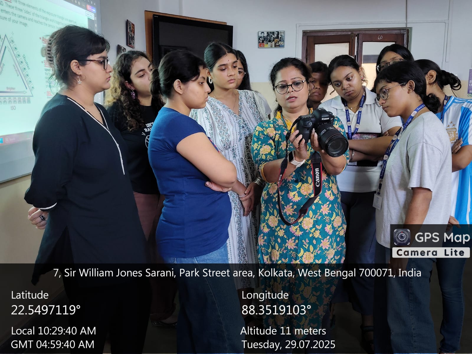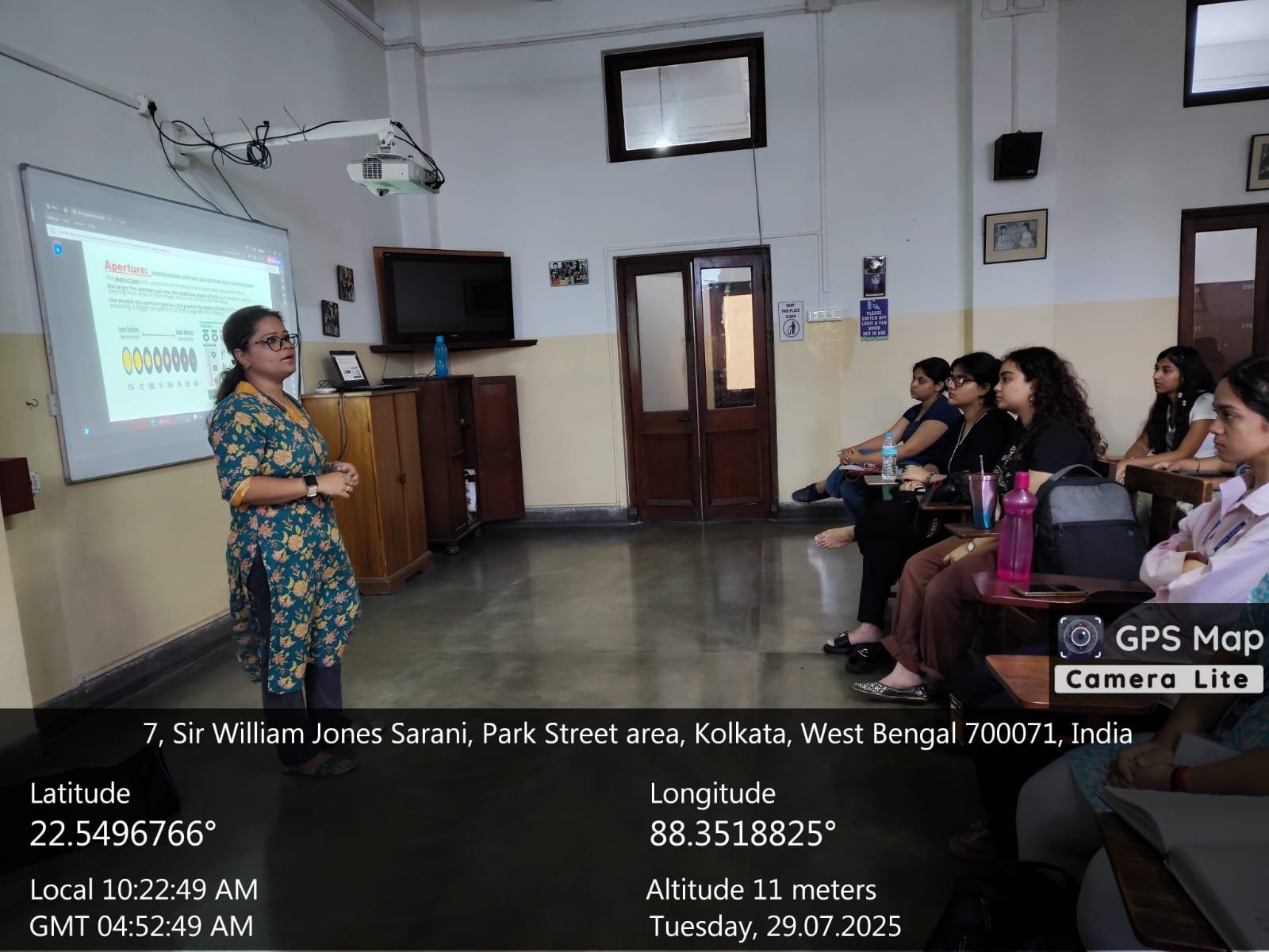 The session began with a comprehensive theoretical introduction to photography, where Ms. Roy covered essential concepts such as the Rule of Thirds, the Exposure Triangle (aperture, shutter speed, and ISO), and the fundamentals of composing a visually compelling image. This was followed by an insightful discussion on videography theory, including the importance of frame rates (frames per second) and how they affect motion, mood, and realism in video production.