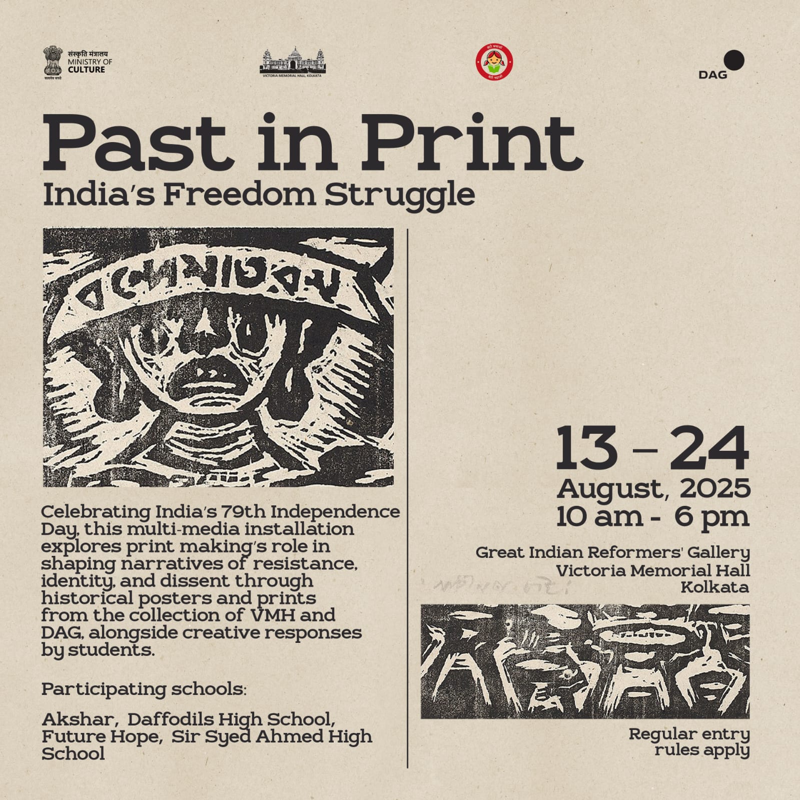 The exhibition traced the evolution of print culture in India. It explored print making's role in shaping narratives of resistance, identity, and dissent through a rich collection of rare books, newspapers, journals, pamphlets, lithographs, and advertisements from collections of VMH and DAG (Delhi Art Gallery). The exhibition also celebrated the figures who used print as a tool of reform and dialogue.