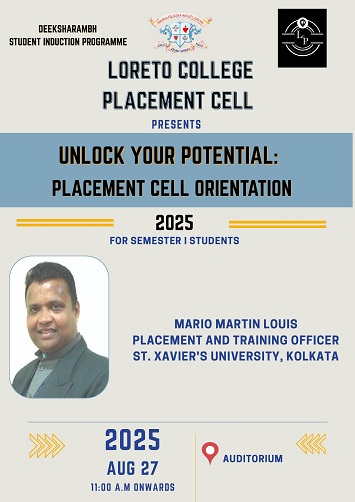 As a first-semester student stepping into college life, one of the most insightful experiences so far has been attending the Placement Cell Orientation Programme at Loreto College on August 27, 2025. The session began with an introduction by Ms. Tania Mondal and Dr. Suranjana Mitra, who gave us a detailed overview of the Placement Cell and its role in guiding students toward professional opportunities. They walked us through the Placement Cell page on the college website, emphasizing how it functions as a resource hub for students. The vision and mission statement of the Placement Cell was highlighted, reminding us that the primary goal of the Cell is to bridge the gap between academic learning and industry requirements while ensuring holistic student development.The programme also featured an enlightening talk by our resource person Mr. Mario Martin Louis, Placement and Training Officer of St. Xavier's University, Kolkata who shared his professional journey and practical advice for students preparing for their future careers.