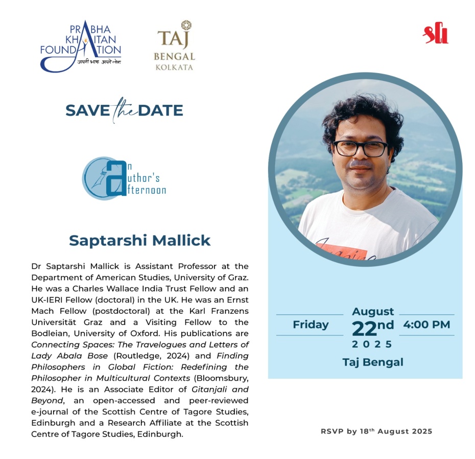 On August 22, 2025, the Prabha Khaitan Foundation hosted 'An Author's Afternoon' where Dr, Saptarshi Mallick, an eminent author and a renowned scholar discussed about his latest book Connecting Spaces: Travelogues and Letters of Lady Abala Bose. The session was attended by 5 students from our college.