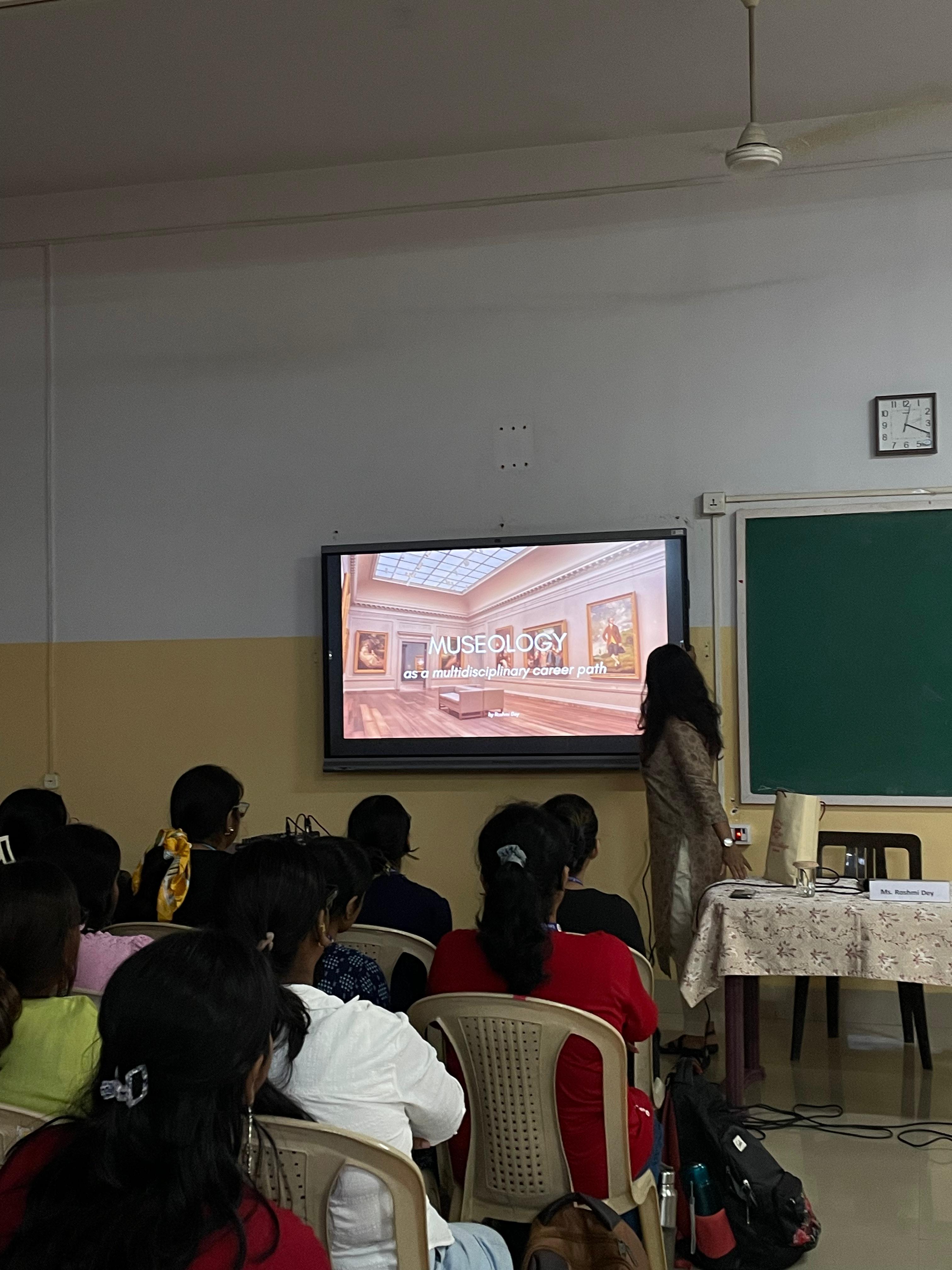 Ms. Dey began by introducing the concept of Museology. She explained that Museology combines observation and research to understand how museums function as spaces of learning and cultural preservation. She also introduced students to ICOM (International Council of Museums) and its role in setting global standards for museum practice.