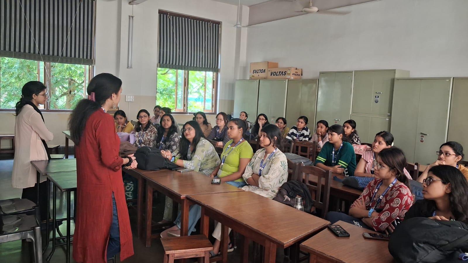 The event was conducted by the Class Representative (CR), Aashiya Akhlaque and the Sub-Class Representative (Sub-CR), Adrika Mukherjee of Semester V, who are the senior most batch and the first batch under NEP 2020 and hence they shared their experiences and offered guidance on navigating college life, balancing academics, and making the most of departmental activities. Interactive ice-breaking session and open discussions helped create a warm and engaging environment, encouraging new students to participate and connect with one another.