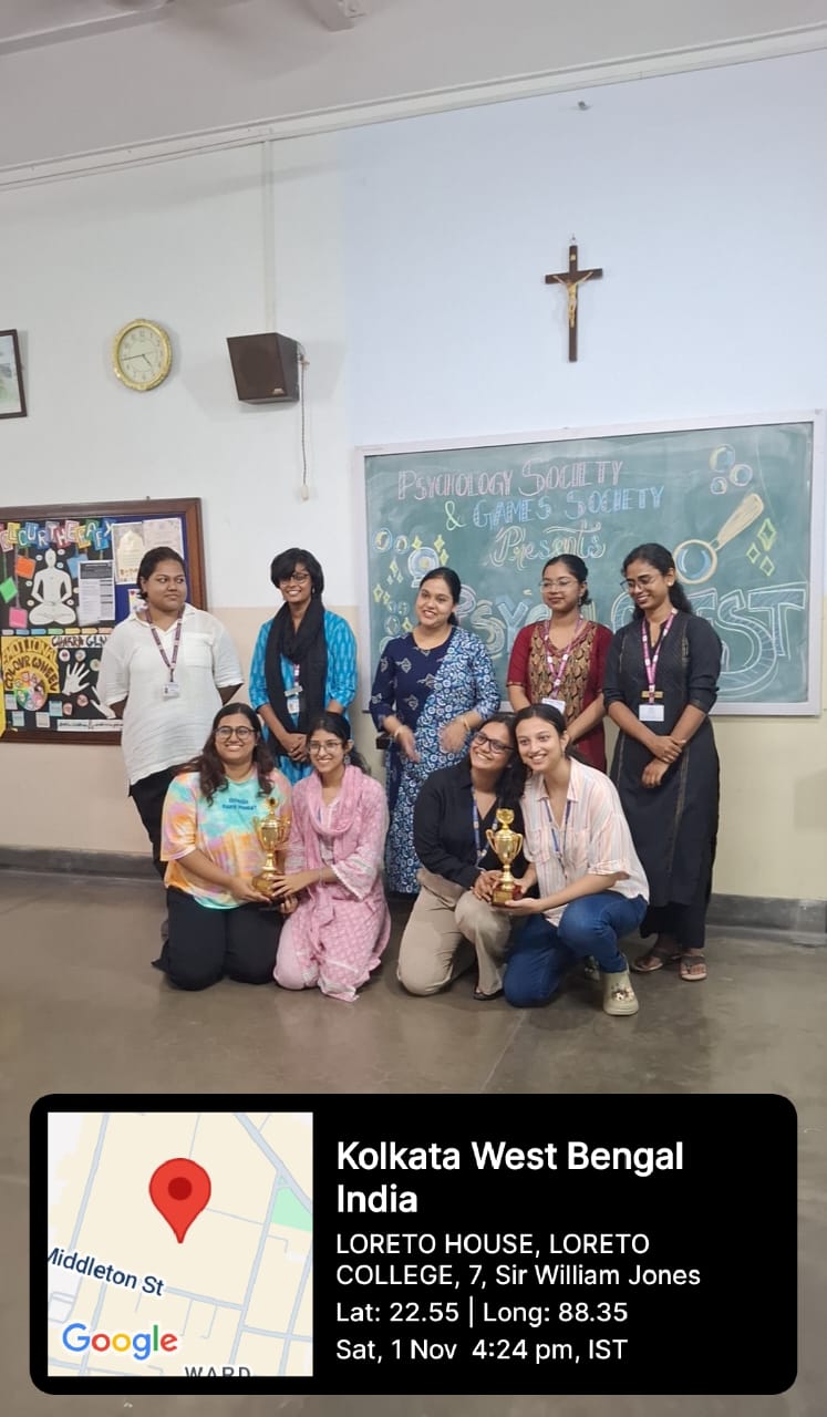 PG Teams: The event was honoured by the presence of Ms. Maupali Ghosh, Licensed Clinical Psychologist and Marriage Counsellor with over 12 years of experience across clinical and neuropsychological settings such as The Marriage Fit, The Institute of Neurosciences (Kolkata), and Tata Medical Center. Her expertise and insightful feedback added immense value to the event. PsychQuest'25 featured a series of innovative rounds that blended psychology-based riddles with physical coordination tasks, encouraging students to think critically under pressure, apply theoretical concepts creatively, and collaborate effectively as a team. Through these rounds, the event enhanced analytical reasoning, presence of mind, and decision-making, aligning with IQAC and NAAC objectives of promoting experiential learning, holistic development, and value-based engagement. The activity-based design of the event supported key NAAC learning outcomes as it: PsychQuest was supported by its sponsors- After an engaging and enthusiastic competition, Aashiya Akhlaque and Ishanee Sengupta emerged as the winners, while Akhshitaa Gupta and Adrika Mukherjee were declared the runners-up. All participants were felicitated by the Judge. The event concluded with a heartfelt vote of thanks, acknowledging the constant support and guidance of our Teacher-in-Charge Sr. Dr. A. Nirmala and Staff Advisors Dr. Sayantani Chatterjee, Dr. Dinaz Jeejeebhoy, and Mrs. Nayanika Saha.