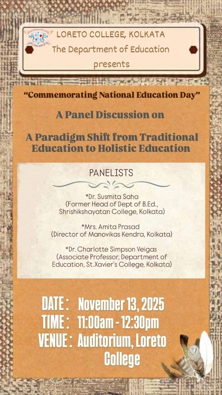 The Department of Education observed National Education Day by organizing an enriching Panel Discussion titled "A Paradigm Shift from Traditional Education to Holistic Education". The programme began with the ceremonial lighting of the lamp, symbolizing the eternal quest for knowledge, followed by a heartfelt prayer rendered by students. The dignitaries and esteemed panellists were warmly welcomed, setting the stage for an engaging and insightful academic discourse.