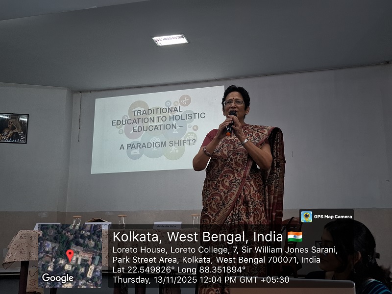 The final speaker, Dr. Charlotte Simpson Veigas, Associate Professor, St. Xavier's College, Kolkata, emphasized the glory of God, indispensable role of life values in both traditional and holistic educational models. She highlighted the need to nurture empathy, creativity, critical thinking, and collaboration to ensure well-rounded growth among learners.