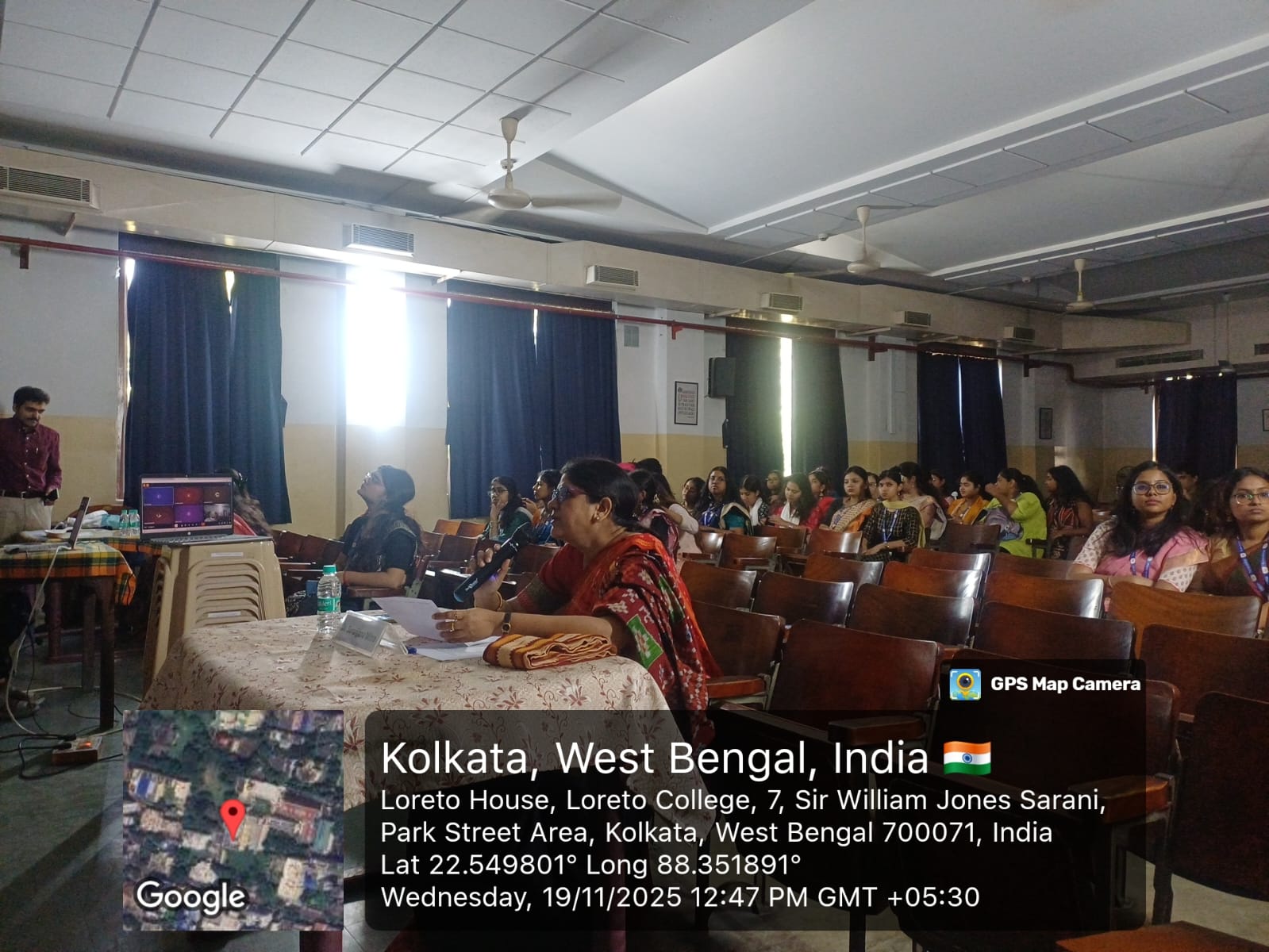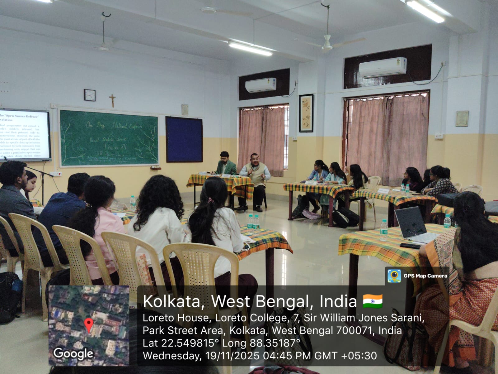 The academic tone of the day continued with the technical session chaired by Dr. Suranjana Mitra, Associate Professor in the Department of Economics at Loreto College. Deservingly a special mention, inter alia, was the paper, presented by the third-year students of the department, namely, Vanshika Agarwal, Deetya Roy, and Prapti Bhattacharyya, which analysed the evolving nature of intellectual property law in the age of artificial intelligence, focusing on the legal and economic implications of AI's growing role in content creation. The session encouraged rich academic discussion, highlighting the interdisciplinary nature of IPR and technological change. The morning session of the programme was drawn to its close with the formal vote of thanks, proposed by Mr. Nilavo Roy, a faculty member of the department and the joint convener of the aforesaid conference.