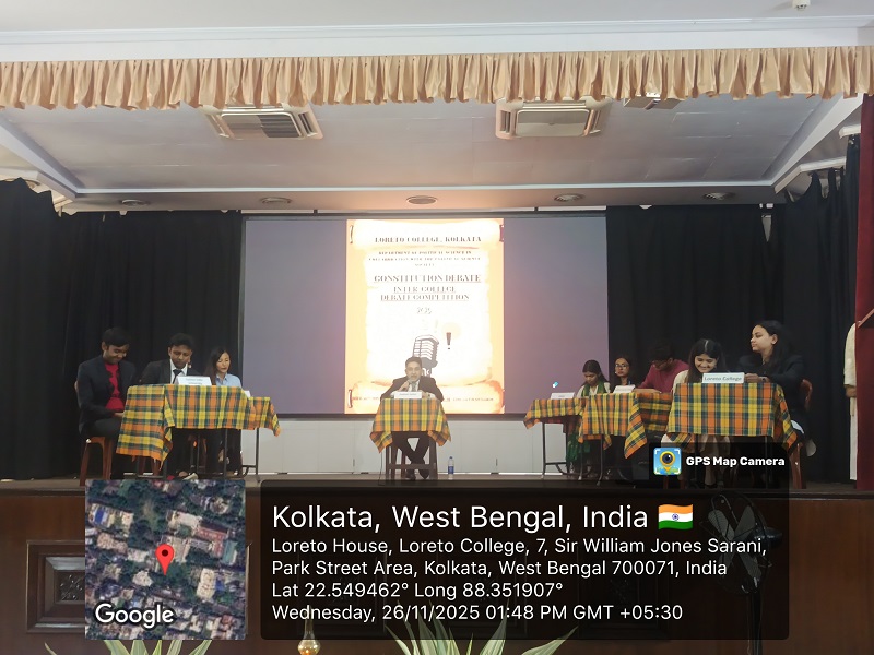 The second half of the programme featured an Inter-College Constitution Day Debate Competition, held at 1:00 p.m. in the college auditorium. Five institutions participated-NSHM, Scottish Church College, Sister Nivedita University, Seth Anandaram Jaipuria College, and the host team from Loreto College. The motion for the debate was: