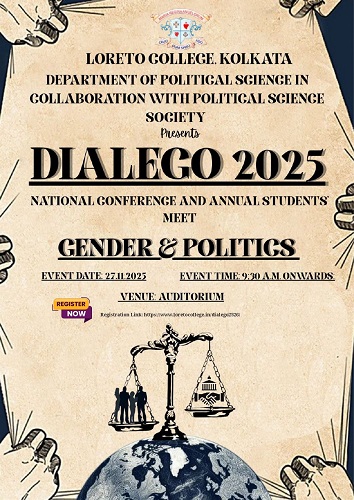 Dialego 2025-2026, a National-Level Conference and Annual Students' Meet of the Department of Political Science, was organized on the 27th of November, 2025 at Loreto College, Kolkata, in collaboration with the Political Science Society. The theme for the year, "Gender and Politics", brought together students, faculty, and young researchers in a day-long academic conference that highlighted the intersections of gendered experiences and political life in India and beyond. The inaugural session opened with the state song during the lighting of the lamp ceremony, followed by the Principal's address, Dr. Sr. A. Nirmala, the Teacher-in-Charge of Loreto College, which underscored the need for gender-conscious scholarship and student-led inquiry.
