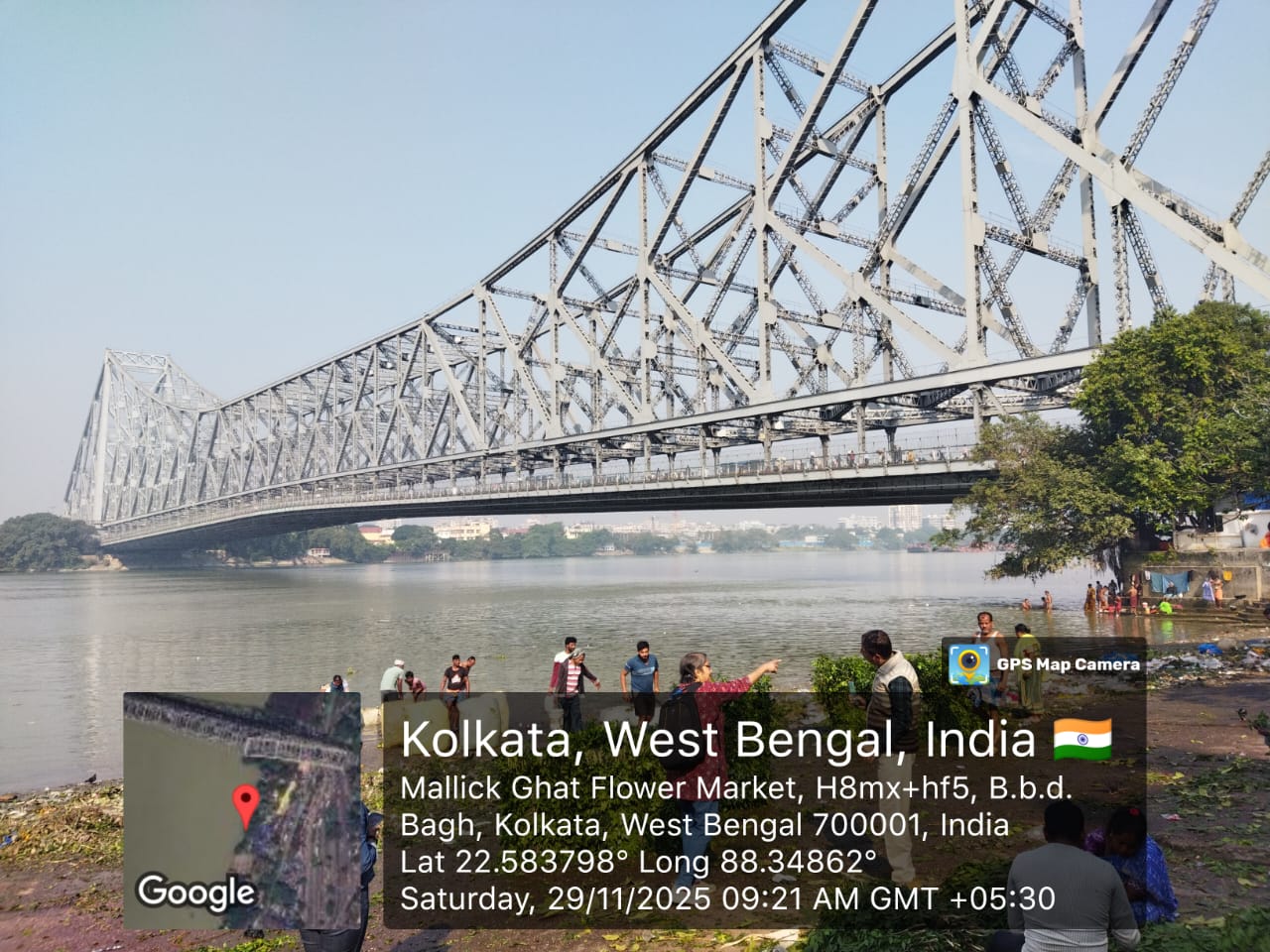 The Chotelal Ghat is a modest but active ghat situated along the Hooghly River. It is frequented by local residents for bathing, performing rituals, and spending time by the riverside. Small shops, vendors of puja items, and a nearby temple reflect the cultural importance of the location. However, scattered plastic cups, flower waste, food wrappers, and discarded items indicated a need for proper waste management.