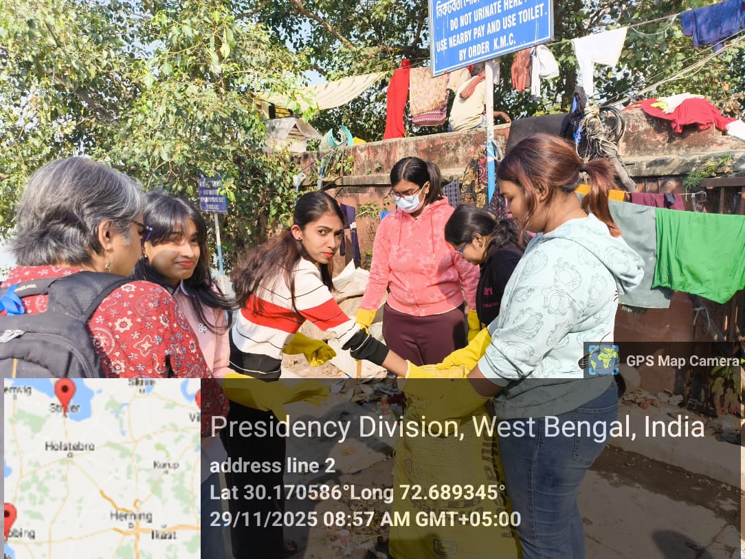 As part of an environmental awareness initiative, seven students guided by their two Professors, from the department of Geography, Loreto college, visited Chotelal Ghat in Kolkata to observe the condition of the riverfront and conduct a cleaning drive. The programme aimed to promote cleanliness, encourage social responsibility, and highlight the importance of maintaining the ghats along the Hooghly River.