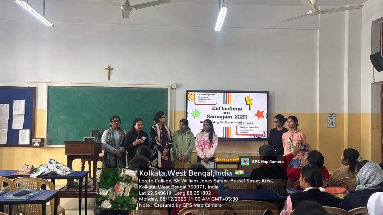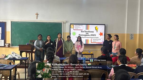 The assembly commenced with a morning prayer, followed by a short but calming meditation led by the presenting group. The entire class participated wholeheartedly, allowing a moment of collective stillness and mindfulness. Subsequently, the group members shared their personal experiences, feelings, and expectations regarding the fest. As this was our first time participating in Samagam as Semester 1 students of the B.Ed Department, their reflections resonated deeply with all of us. The assembly ended with a post reflective Samagam prayer.