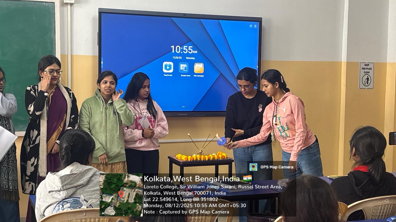 The morning assembly dedicated to reflecting on the Samagam college fest began with a serene and meaningful atmosphere. A table was thoughtfully arranged and adorned with garlands, incense sticks, and candles, setting a peaceful tone for the gathering. This created a sense of reverence and anticipation as we prepared to look back on our experiences at Samagam.