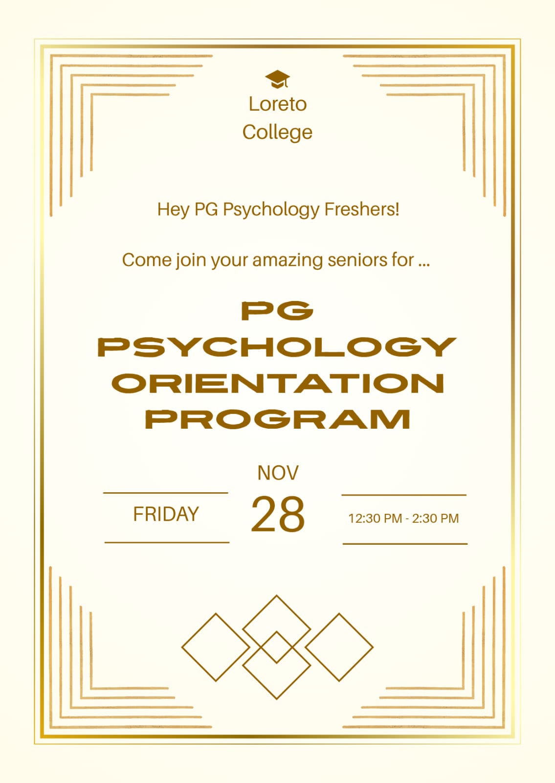 The PG Psychology Orientation Program proved to be an informative, interactive, and meaningful experience for all participants. By allowing second-year students to lead the initiative, the department fostered a peer-supported learning environment that bridged academic, social, and practical elements of the course.