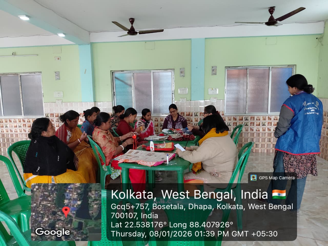 The camp aimed to promote community development, women empowerment, health awareness, and digital literacy, which match the goals of NSS and the NAAC standards on outreach activities and social responsibility. On Day 1 and 2 participants took part in a Shola craft making workshop conducted alongside Bhagini Sudhira Nari Kalyan. Day 2 focused on women's nutrition and menstrual hygiene. On Day 4 educational and recreational activities took place at Boinchtola Upendranath Vidyamandir. Day 5 covered cybercrime and scam awareness for villagers. On Day 6 Ms. Ranita Sen taught Boinchtola village women paper bag and crochet making, promoting sustainable livelihoods, self-reliance, confidence, and women empowerment through ecofriendly skills.