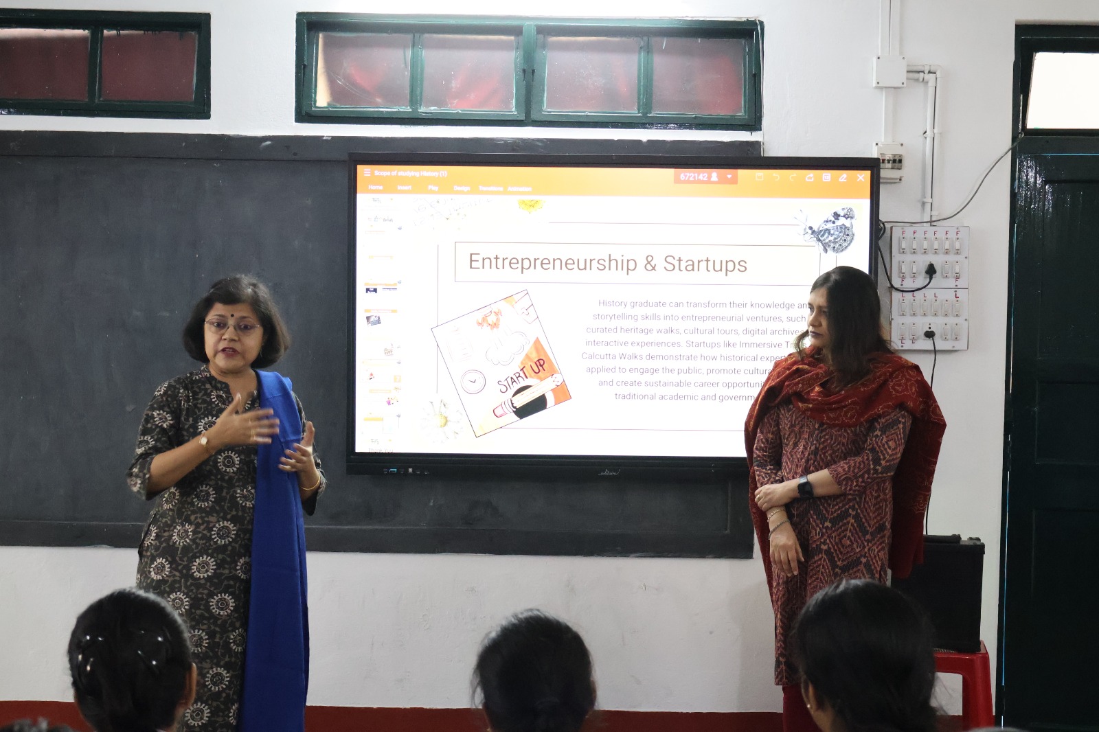 The sessions were conducted by the faculty members of the Department across schools like Loreto House, Loreto Sealdah and Loreto Asansol, where they explained in detail the ways in which studying History as a discipline can provide access to careers in academia, public policy, the civil services-both at the central and at the state level, museum management, corporate archives, journalism and media and in many other related fields. Unusual career choices such as providing expertise to the making of historical films, OTT series and other similar content were also discussed.