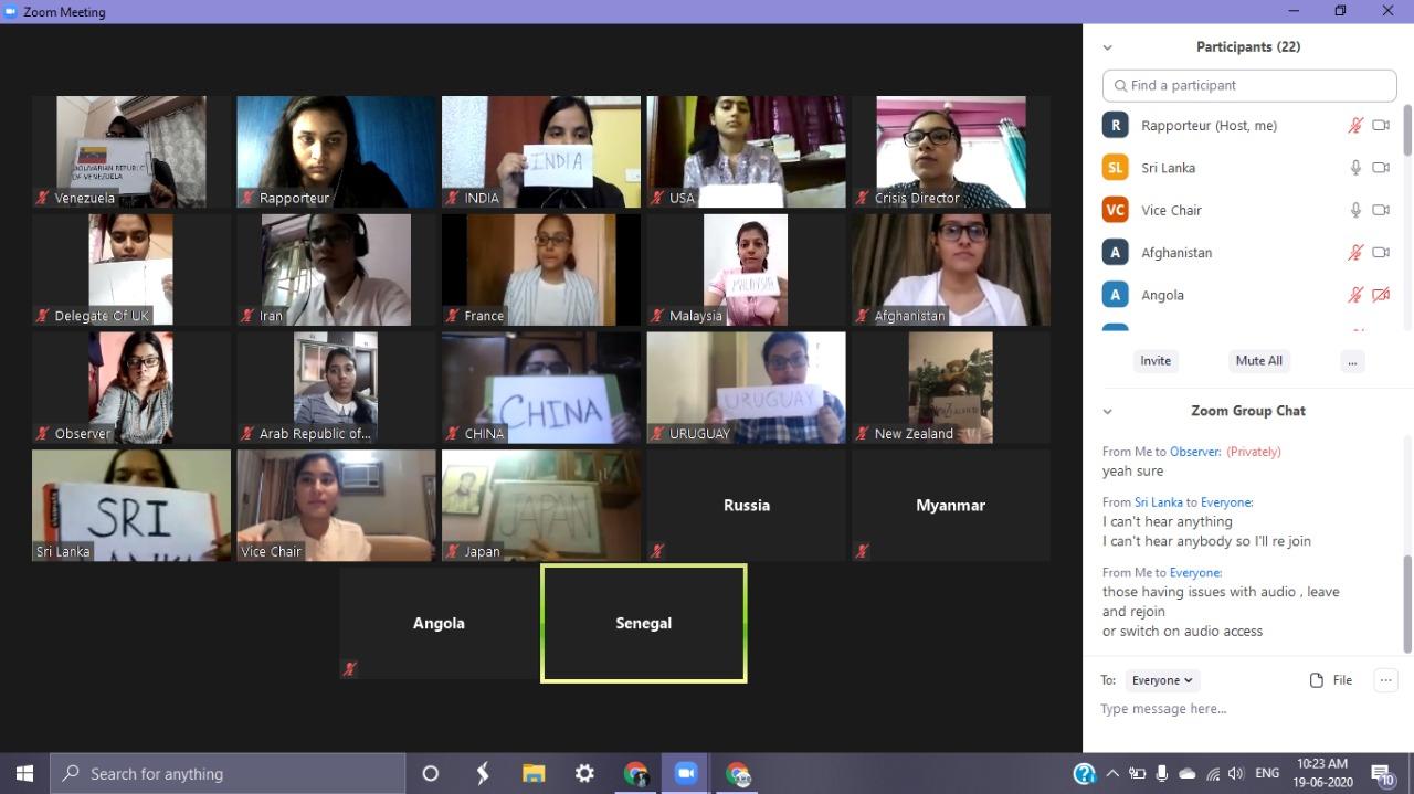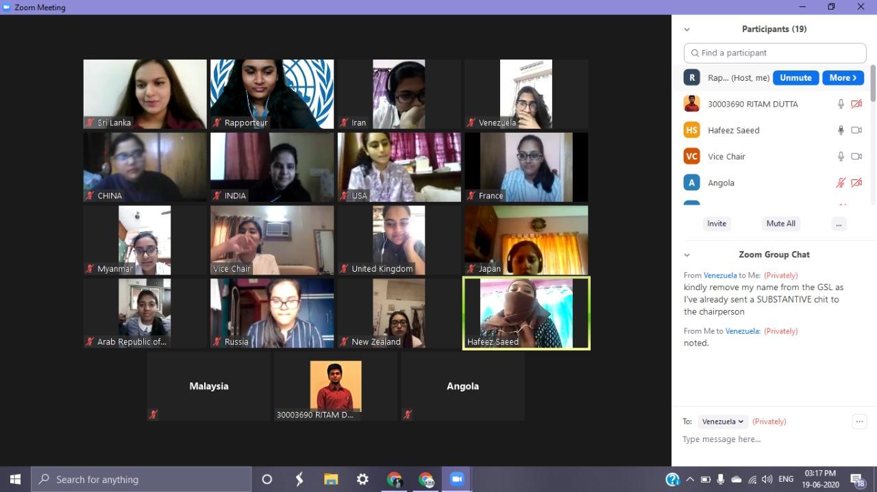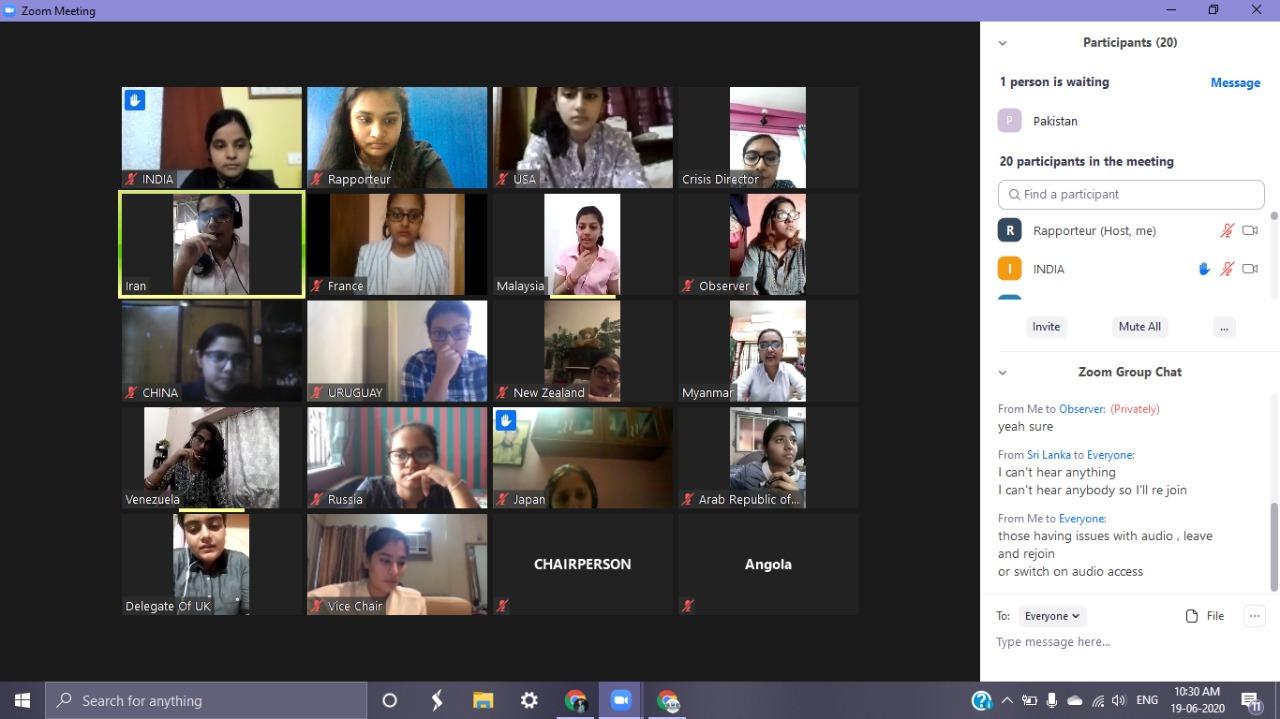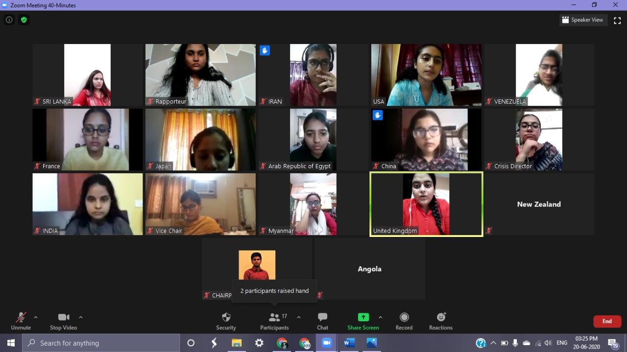The Debating Society of Loreto College organised an online Intra-Model United Nations event, for the students of Loreto College, on the 19th and 20th of June. The committee being simulated was United Nations Security Council with the agenda discussing the situation in Kashmir. The committee was different from others because it was set in the year 2016, giving the students a chance to choose an alternate fate for Kashmir. The event was spread over two days, with four hours of committee on each day, conducted via Zoom. The MUN was chaired by Mr. Ritam Dutta Chowdhury, an avid debater and seasoned chair at a host of Model UN conferences across the city.