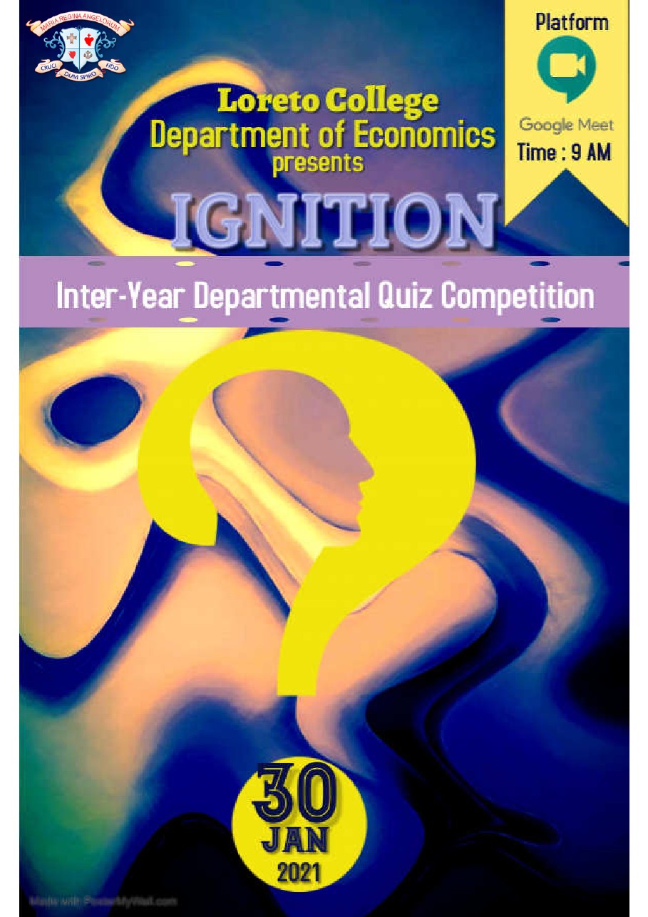 On January 30, 2021, an Inter-year Quiz Competition, christened as ‘Ignition’, was organized by the Department of Economics. As an annual event of the department, this is the third year of the inter-year quiz competition. The event has become a mark of an initiative to expand the scope of learning experience for the students beyond the contour of classroom teaching-learning, beside enabling them to get themselves tested at peer level on the extent of exposure to reality in relevance with academics. The competition featured all the three years. One team from each year, consisting of three members, participated in the competition. The event was inaugurated with the motivating words of Hon’ble Principal, Sr. (Dr.) Christine Coutinho. The quiz competition spanned over 2 rounds, with Round 1, conducted by Mr. Nilavo Roy. It was a test on the participants’ cognitive skills with regard to the core concepts of Economics in theory and also events / narrative on Economics in practice. Round 2, conducted by Mr. Mainak Bhattacharjee, involved a test of fact checking on economic statistics and policy developments of recent time, as in the context of India. The program concluded with a formal Vote of Thanks by Dr. Rupa Ghosh and further that, every student, participating directly or indirectly, ended up with the feeling of learning being a fun activity.