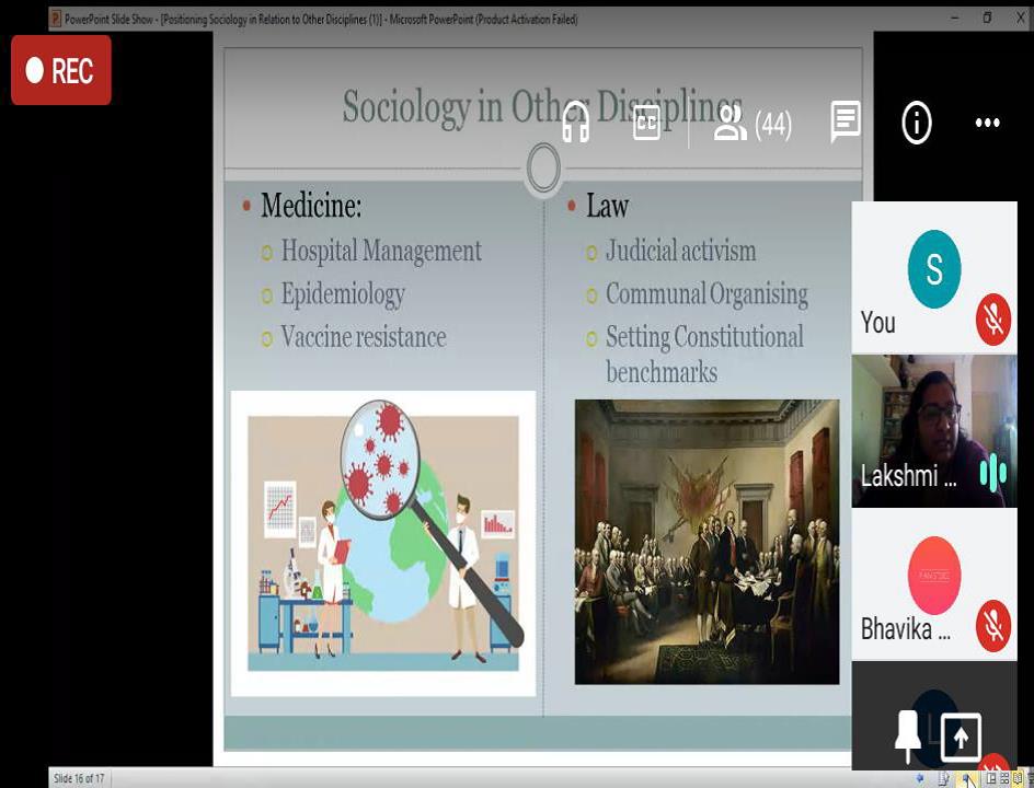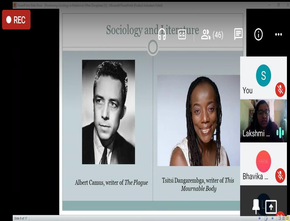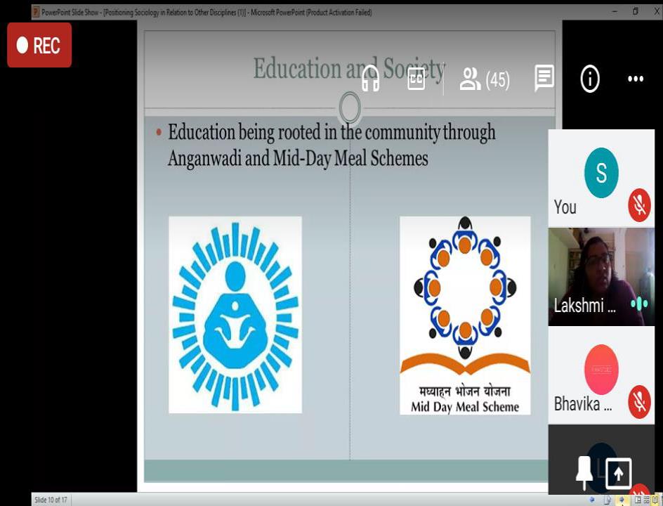 The title of her presentation was ‘Positioning Sociology in Relation to Other Disciplines’. This Web-talk was designed to enable students discover a sociological perspective in their own respective disciplines and to encourage an inter-disciplinary understanding. Through her presentation, the speaker addressed and encouraged the students to understand the overlapping boundaries of diverse disciplinary perspectives by infusing her deliberations with multiple examples from Psychology, History, Literature, Education, Geography, Economics, Medicine and Law. She pointed out the interconnectedness of the social world and left the students with a thought to ponder over: how insulated can any social science be? This Web-talk addressed the Loreto College students who are attending as well as have attended Sociology Elective courses in the last two years.