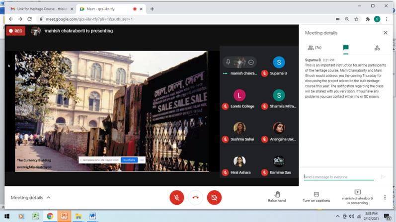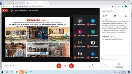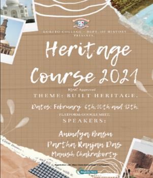 The Department of History held its Annual Certificate Course on Heritage Awareness from February 6 to April 14, 2021. The theme for this year was “Built Heritage”. The speakers were Mr. Anindya Basu, Mr. Partha Das and Mr. Manish Chakravarty who are all renowned architects of India. The topics ranged from the Alhambra Palace in Spain to Serampore located at the outskirts of Kolkata. Due to the pandemic the lectures were held online and the students were asked to prepare a project on a heritage building in India, its significance, the risks it faces and ways of preserving and protecting the structure.