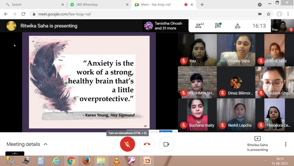 The Department of B.Ed., Loreto College, Kolkata, in collaboration with St Paul’s Boarding and Day school, Khidderpore, Kolkata organised a virtual social awareness campaign on ‘Mental Health’ for the students of Class X of the school. The campaign was conducted by B.Ed. trainees over Google Meet on June 15, 2021. The session began with the teacher trainees welcoming the students and the school mentor, Ms. Sabrena Pote. The campaign then proceeded with a detailed discussion on ‘adolescence’ and how this is a time of ‘storm and stress’ for them. The students were shown a video that aimed to reduce the stigma attached to mental health. This was followed by a discussion on traits such as anger and frustration, anxiety and worry, low mood and boredom and interpersonal relationships. The campaign focused on how the students can deal with the various aspects of their own self, specifically the wellbeing of their mental health. As the campaign title suggests, the students were also provided with various coping strategies, so that they can understand and pave way for acceptance within the ‘self’ that IT’S OKAY NOT TO BE OKAY. The campaign was supported throughout, by a detailed illustrated PowerPoint Presentation, which helped the students get a visual representation of the campaign and its purpose. The campaign ended with a video, which further consolidated the purpose of the social awareness programme on Mental Health; it was followed with a vote of thanks delivered by a teacher trainee from the B.Ed. Department, Loreto College. We are grateful to the Principal of St Paul’s Boarding and Day School, Sister Rosli Kerketta and Ms. Pote for their cooperation and immense support for making this campaign a success.
