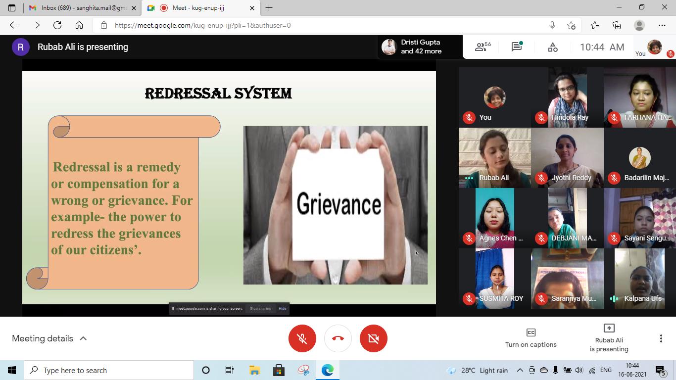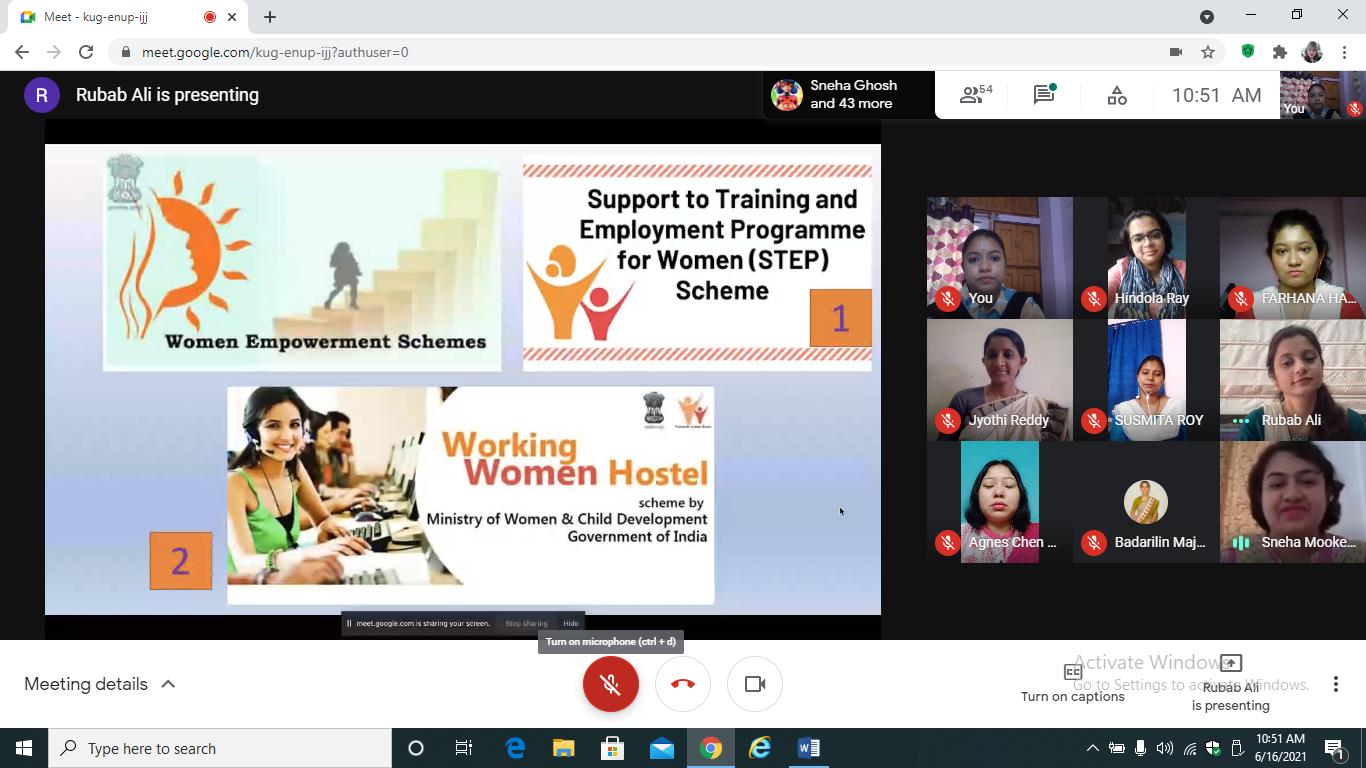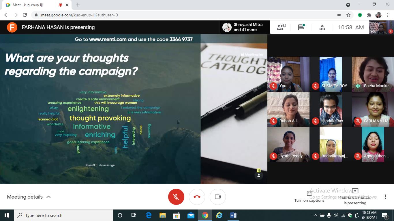 The Department of B.Ed., Loreto College, Kolkata, in collaboration with Loreto Day School, Dharamtala, organised a virtual social awareness campaign on 'Gender and Employment’ for the students of class IX of the school. The virtual campaign was conducted by the B.Ed. trainees on Google Meet on June 16, 2021. The session began with the teacher-trainees of the Department of B.Ed., Loreto College, Kolkata, addressing the teachers and students of the school and the screening of a video on a hypothetical situation of reversal of gender roles at the workplace to highlight the prejudices that women have to combat in their professional lives. The session continued with a detailed and illustrated discussion on the various problems women face in their field of work such as inferior treatment, the concepts of 'glass ceiling', de facto position of women, and the persistent issue of gender pay gap across different professional sectors. The school students were requested to participate in a Google poll session where three situations were presented to the students to gauge their opinion on certain issues. This was followed by a comprehensive discussion and portrayal of the types of harassment at the workplace which was complemented by a video on gender-based violence at the workplace. The teacher-trainees carried forward the session by suggesting some measures to overcome the gender-based problems in the professional field by shedding light upon significant matters such as grievance redressal system, proper work ethics, the various laws to protect women at workplace, the important Government schemes to help women with gainful employment and the roles played NGOs for making the professional space safe and free of prejudices for women. The discussions were concluded with an activity where the students put forth their views and thoughts about the campaign. The campaign focused on making the students aware of gender-based issues at the workplace and the measures to address and overcome them. The campaign was concluded by highlighting the powerful words of Mahatma Gandhi that “Woman is the companion of man, gifted with equal mental capacity” to reiterate the need for equality of gender at the workplace. The campaign ended with a vote of thanks delivered by a teacher-trainee from the Department of B.Ed., Loreto College. We are grateful to Mrs. Meenakshi Kapur, Principal, Loreto Day School, Dharamtala, and Ms. Debjani Mahajan for their immense support and cooperation towards this programme.