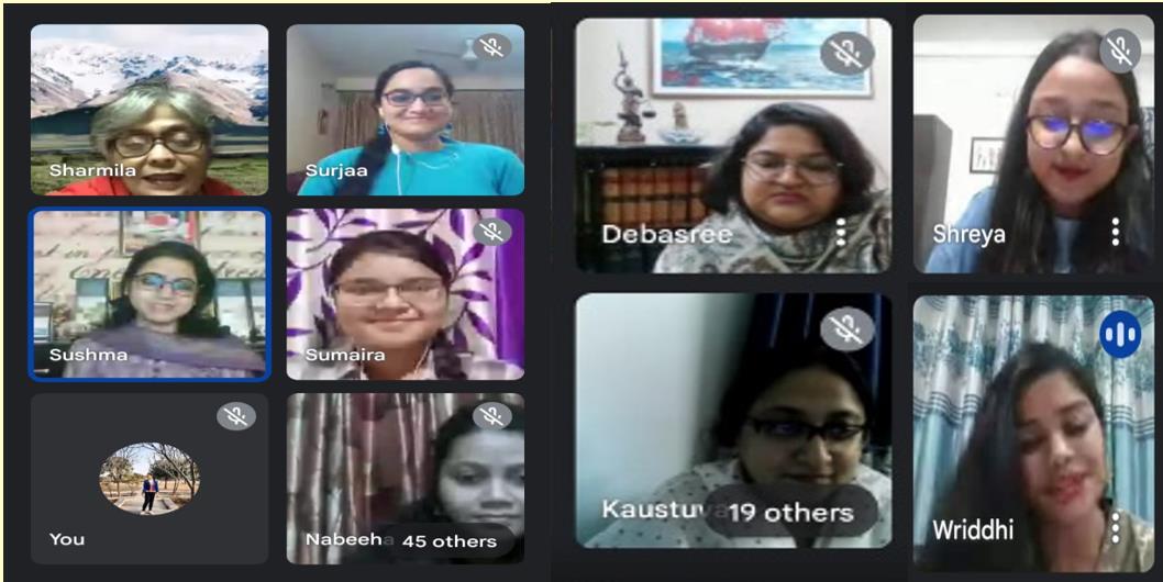 The panelists for the interactive session were Ms. Susmita Chatterjee (Project Manager and Researcher at SwitchON Foundation), Ms. Surjaa Chakravarti (Ph.D scholar at the Centre for the Study of Regional Development at Jawaharlal Nehru University, New Delhi), Ms. Shreya Karmakar (Research Assistant at Coalition for Disaster Resilient Infrastructure (CDRI), New Delhi), Ms. Nabeeha Jamil (presently pursuing her Masters in Geoinformatics, from Birla Institute of Technology, Mesra). Through the interactive session the former students shed light on the scope and opportunities provided by the Department that helped shape their careers and personalities. The panelists addressed queries while providing suggestions and guidance about specific career options.