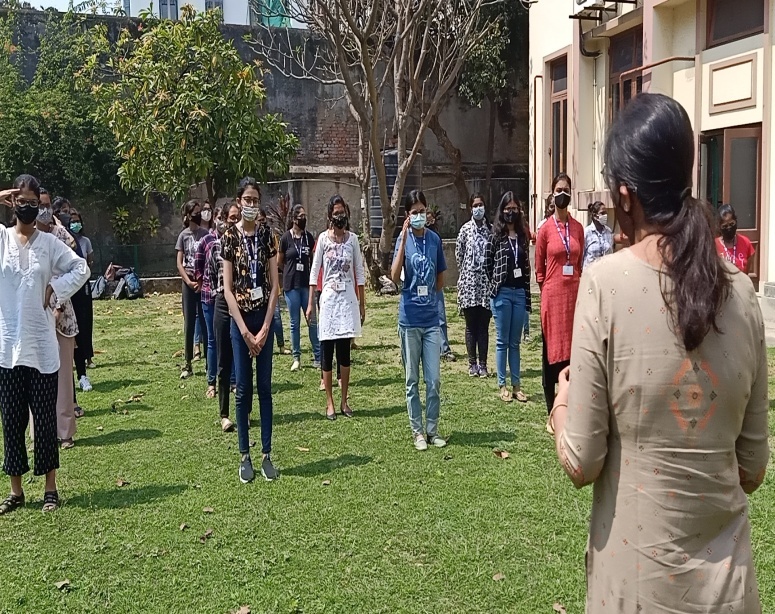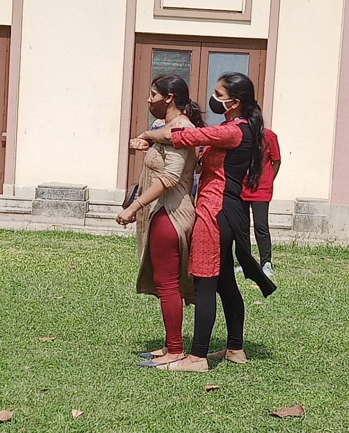 In the 40-minute-long workshop, the students were made aware of the importance and basic ideas of self-defence. The workshop focused on teaching self-protection while using public transportation or visiting crowded places and when attacked by miscreants, with special emphasis on time and position management techniques.
