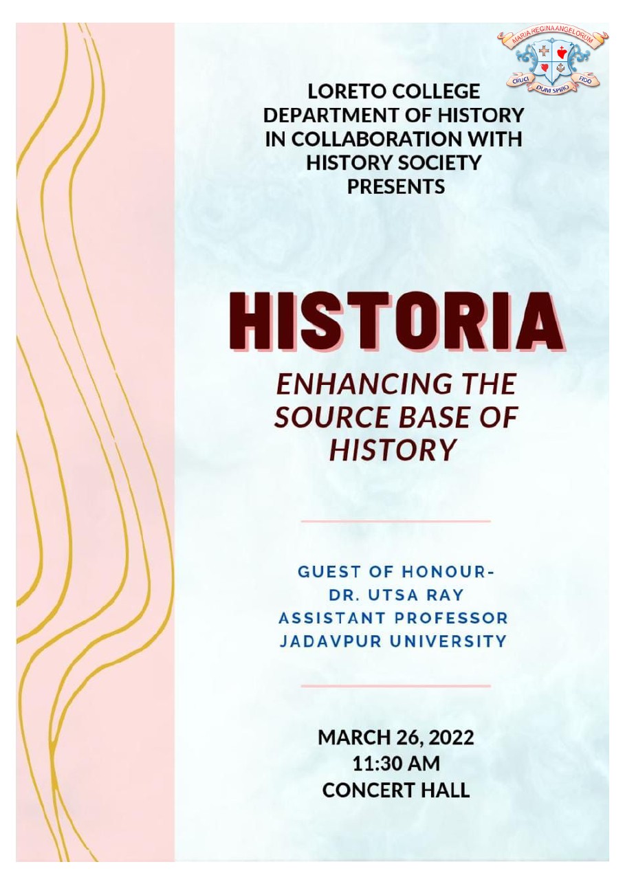 The sixth edition of Historia was organised by the Department of History in collaboration with History Society on March 26, 2022. The theme for this year was “Enhancing the Source Base of History.” The Guest of Honour and judge was Dr. Utsa Ray, Assistant Professor, Jadavpur University. Twelve papers dwelling on unconventional sources of History—ranging from oral history and memories to podcasts and crimes—were presented. Utsa Pal and Sagarika Ganguly were the joint winners, with Roshmi Dey, Banan Irfan, and Madhuparna Choudhury being declared the runners-up.