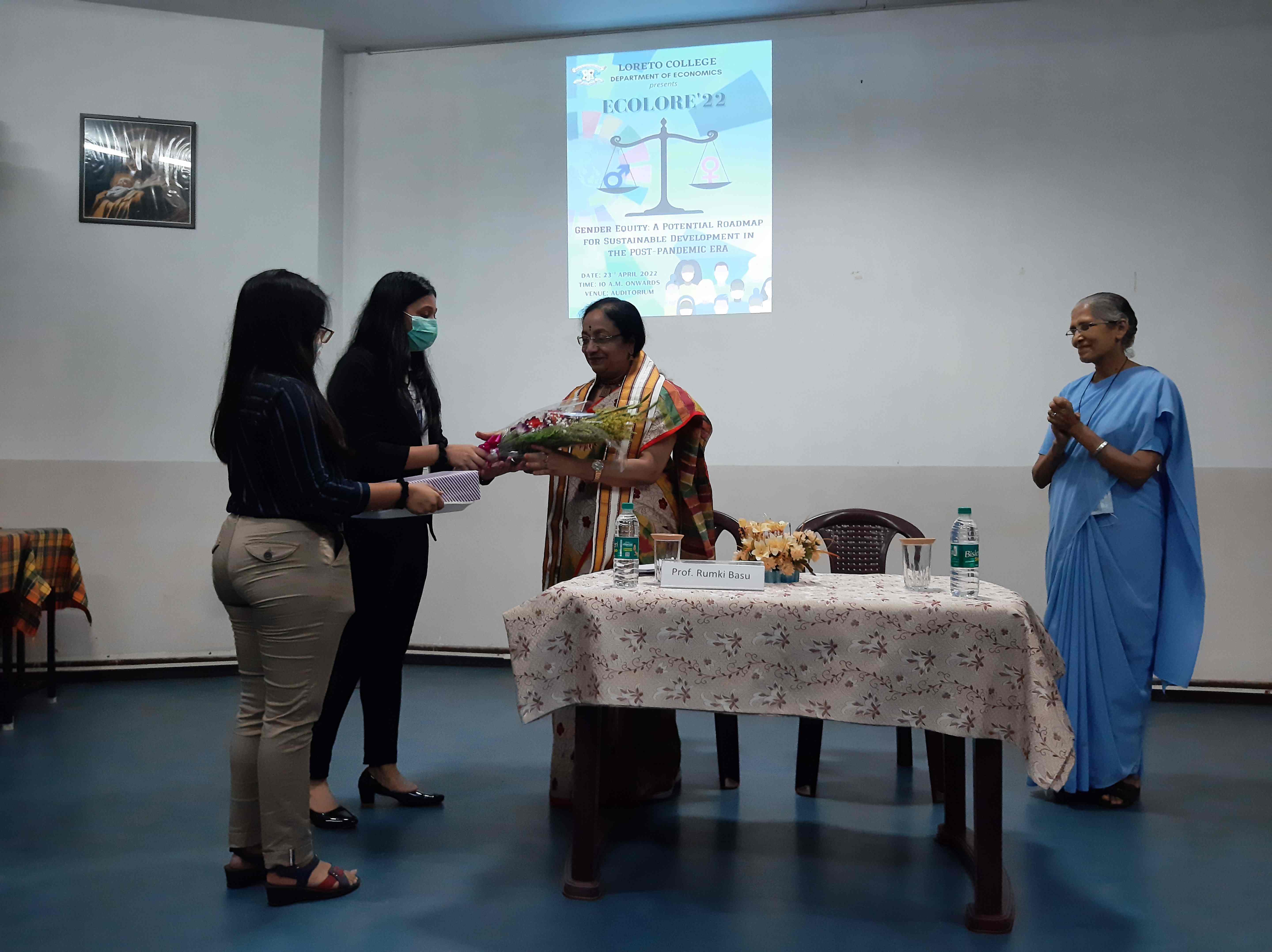 On April 23, 2022 the Department of Economics organised ECOLORE, an inter-collegiate academic fest. Since its inception in 2014, the rich legacy of ECOLORE has expanded every year, leading to the anticipated 8th edition, post-pandemic. This year’s theme was ‘Gender Equity: A Potential Roadmap for Sustainable Development in the Post-Pandemic Era’. The keynote speaker this year was Prof. Rumki Basu, of Jamia Millia Islamia University, New Delhi. Prof. Basu emphasized how women’s equality is taken for granted in our country, even though our Constitution was one of the first in the post-colonial world to include gender equal rights. Her address highlighted the importance of progressive public policies and good governance to bridge the gender gap.