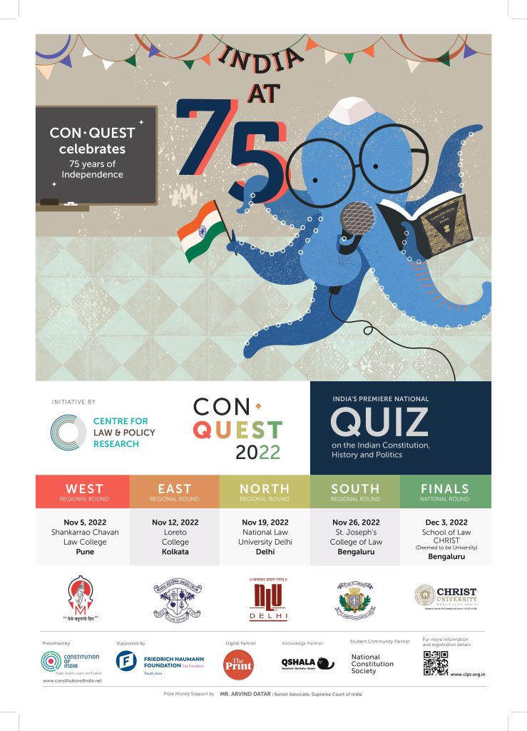 The Centre for Law and Policy Research, Bangalore in collaboration with Loreto College, Kolkata hosted the East Regional finals of the 6th edition of Con - Quest, India’s Premiere National Quiz on the Indian Constitution, History and Politics on Saturday, November 12, 2022. Students travelled from Guwahati and Cuttack to join colleges from the West Bengal for this event. Of the 39 teams that registered, the six who qualified the preliminary round to reach the finals were, National Law University, Odisha, Gauhati Medical College and Hospital, IIFT, Kolkata, Presidency University, Kolkata and two teams from The West Bengal National University of Juridical Sciences. After six exhilarating rounds of quizzing the team from Gauhati Medical College and Hospital emerged victors, with NUJS team one coming second. National Law University, Odisha were the second runners up. The top two teams will be representing the Eastern Region in the National finals at Bengaluru.