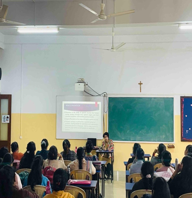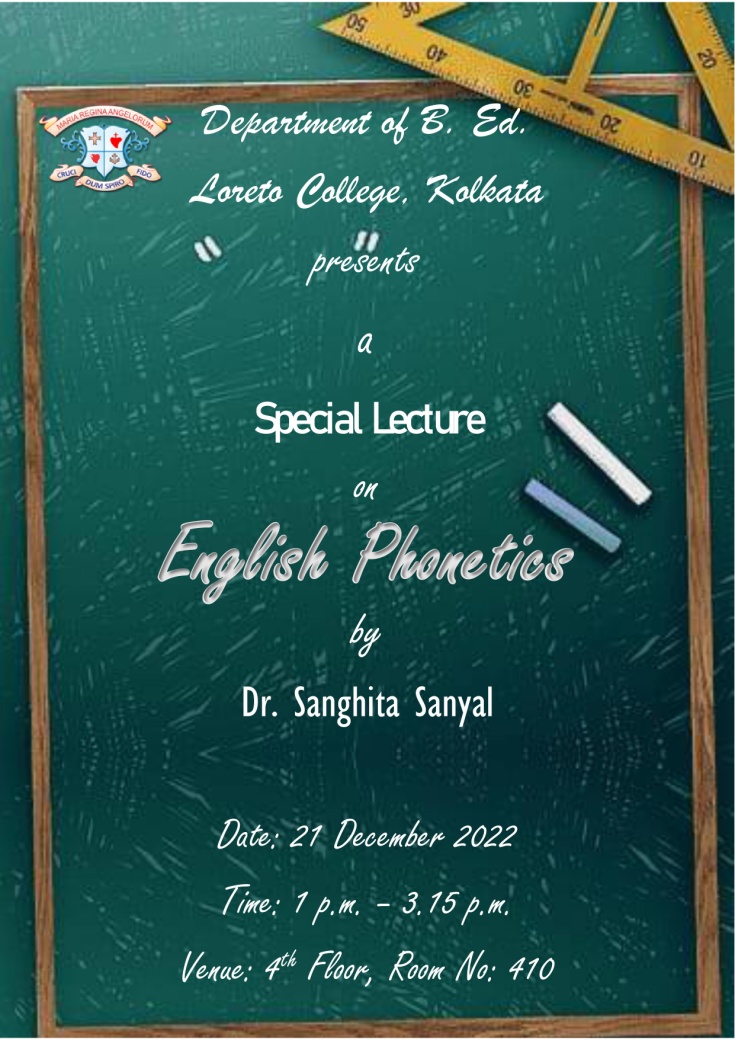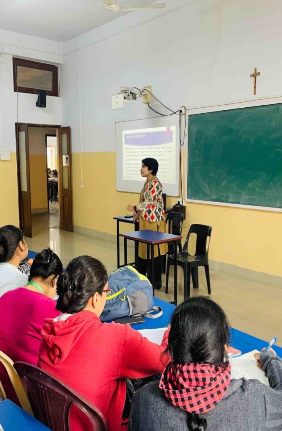 On December 21, 2022 the Department of B.Ed organised a Special Lecture on English Phonetics chaired by Dr Sanghita Sanyal, faculty, Department of B.Ed.. It was an engaging session where the students of B.Ed Semesters I and III learnt about the nuances of speech. The event commenced with a brief introduction to phonetics and phonemes. Dr Sanyal also explained with relevant images various speech organs that are responsible for our utterances. The event was interactive and Dr Sanyal meticulously attended all questions asked by citing relevant examples from daily life.