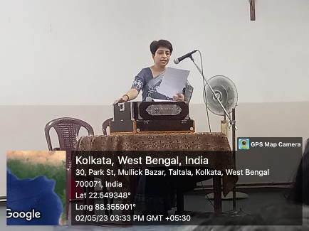 A presentation on “Perception of Mother, Nation, Goddess in a few songs of Rabindranath Tagore” was organised by the Research Cell of Loreto College on May 2, 2023. The speaker for the event was Dr. Sanghita Sanyal, Assistant Professor, Department of English, Loreto College. Dr. Sanyal began her presentation with a performance of a song by Rabindranath Tagore, after which she provided an overview of Tagore’s songs from the “Swadesh Parjay.” She argued that these songs may be called songs of solidarity, and that they create a somewhat nebulous perception of Tagore’s ideals of Mother, Nation, and Goddess. Through these songs, Tagore was incorporating himself into the contemporary milieu of pacifist and militant nationalisms, and his perceptions played a role in reshaping the collective national conscience. Dr. Sanyal also discussed how the songs are open to a newer reading of the gender question. Touching upon Tagore’s idea of nationalism in relation to the rest of the country, the presentation analysed Tagore’s viewpoints on the problematic space that women occupied in and around the indoctrinated notions of nation and home.