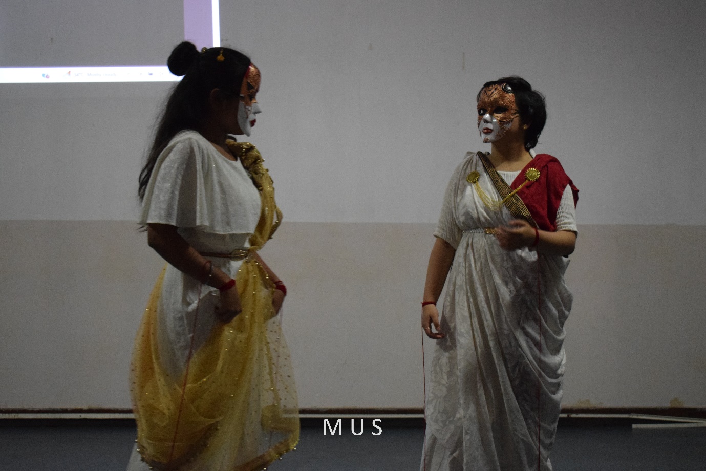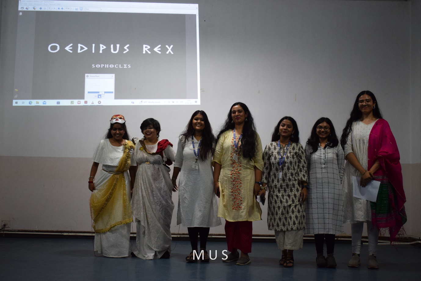 The Departments of English and Bengali of Loreto College, Kolkata, in collaboration with the Internal Quality Assurance Cell (IQAC), organised a colloquium on Text and Performance on April 28, 2023. The event began with a number of student paper presentations in English and Bengali. Dayita Samanta (Third Year, English Department) offered a comparative study of Dionysiac rituals and Raslila through the lens of the carnivalesque. Valentina Mondal (Second Year, Political Science Department) discussed the evolution of the structure and style of Rabindranath Tagore’s plays and their relation to Indian folk forms. A group of third-year students of the Department of English traced the origins and evolution of puppetry in the West and in India, following which Shreshtha Paul and Somoshree Palit performed a reimagined enactment of Sophocles’ Oedipus Rex in the form of “Jyanto Putul Naach.” The event concluded with a dance demonstration on the theory of Rasa by Ms. Dishari Mukhopadhyay, Guest Lecturer in the Department of Bengali.
