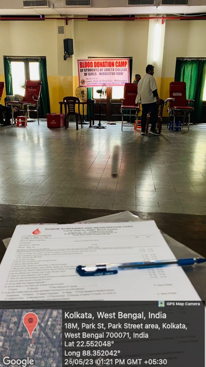 On May 25, 2023, a Blood Donation Camp was organized by the National Service Scheme (NSS) Society, Social Service Society, and AICUF in the Loreto College campus, in collaboration with the Lions Club of Calcutta, Mahanagar and Lions Clubs International District 322B1. The camp is conducted every year to generate awareness and encourage all healthy adults to donate blood for those in need. Individuals who were between 18 to 60 years of age and who weighed over 45 kgs were considered eligible for donation. They also had to answer a few additional questions and undergo a haemoglobin test before they were deemed fit to donate blood. The camp successfully registered 64 donors for the campaign, including students from all the years, their family members, and even the Principal of Loreto College, Sr. Dr. Christine Coutinho. The doctors, nurses, and Society volunteers ensured that each donor took adequate rest and food before resuming their regular activities. The programme was successful due to the dedicated efforts of the organisers and the selfless generosity of the donors.