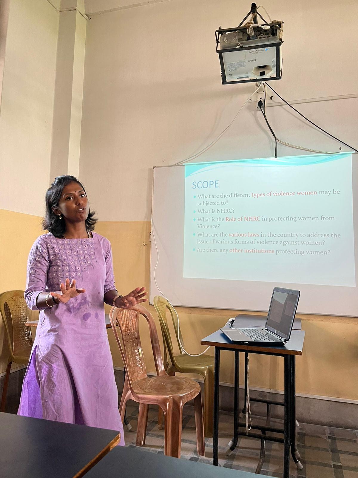 On May 6th Professor Bhadra delivered a brilliant lecture on India’s Commitment in Upholding UN Conventions on Human Rights. Dr Maria Fernandez from West Bengal Commission on Women addressed the students on Women’s Rights are Human Rights and took them through the various forms of violence and abuse faced by women with special emphasis on the intervention strategies. Her engaging and inspiring lecture was much appreciated by the students.