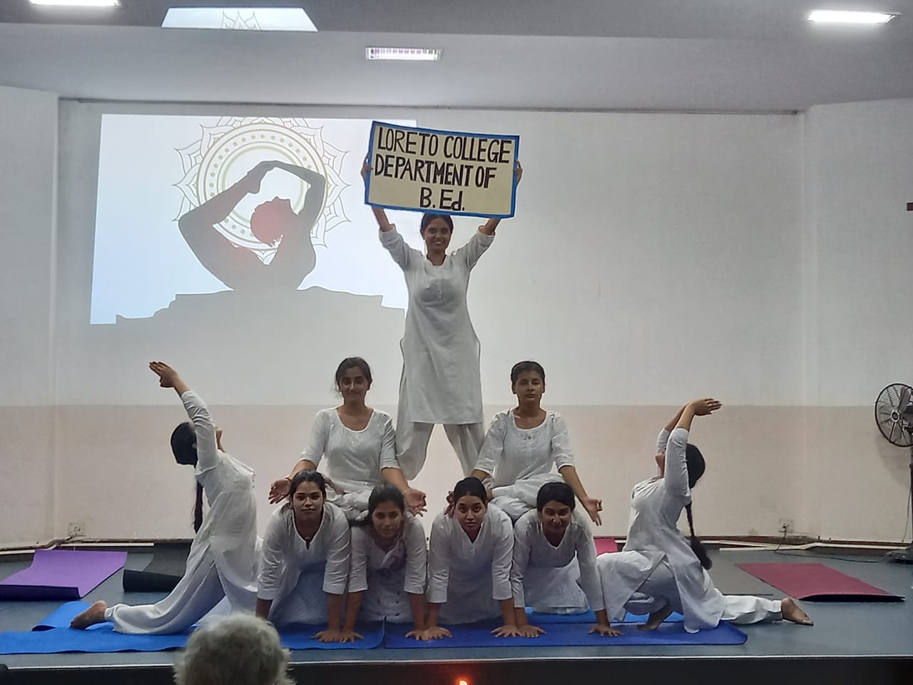 On July 5, 2023, a programme was organized by the first-year students of the Department of B. Ed., Loreto College, Kolkata to celebrate World Music Day and International Yoga Day. The theme for this year was “One Earth, One Family, One Future.”